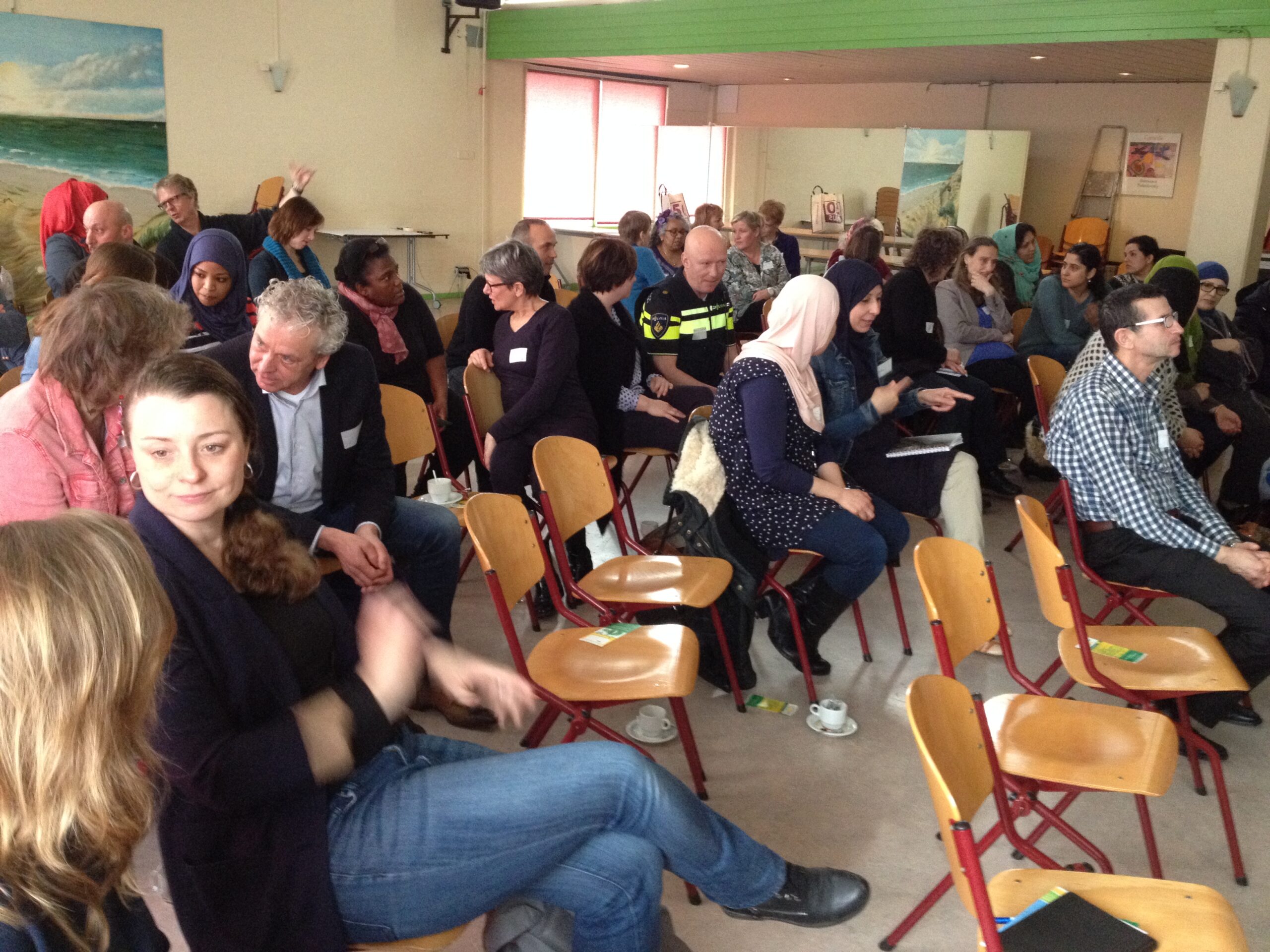 Op zo’n 40-50 vrouwen waren er misschien 10 mannen, en die waren er grotendeels beroepsmatig. Opvoeden – het conferentiethema – is blijkbaar een vrouwenzaak. Zou je denken. De workshops maakten duidelijk dat dat subtieler ligt. De mannen zijn aan het werk, was een verklaring. Vrouwen géven mannen de ruimte niet om te zorgen. Partners hebben niet per definitie dezelfde ideeën. Dat zijn allemaal standaard opvoedingsaspecten die in alle culturen en groepen zijn te vinden. Dat geldt ook voor de algemeen gehoorde opmerking dat ‘we’ teveel zijn gaan denken dat opvoeden een zaak voor de ouders en de ouders alleen is. Dat is niet zo. Opvoeden is ook het bijbrengen van de groepsnormen ofwel de buurt, de ‘village’ van de wethouder. Vroeger “wist je dat buurvrouwen je in de gaten hielden en aan je moeder vertelden wat je deed”, vertelde iemand. De openbare ruimte werd gezien door heel veel ogen. Maar, zoals de wijkagent opmerkte, “mensen weten een heleboel van elkaar, maar spreken elkaar er niet meer op aan”.