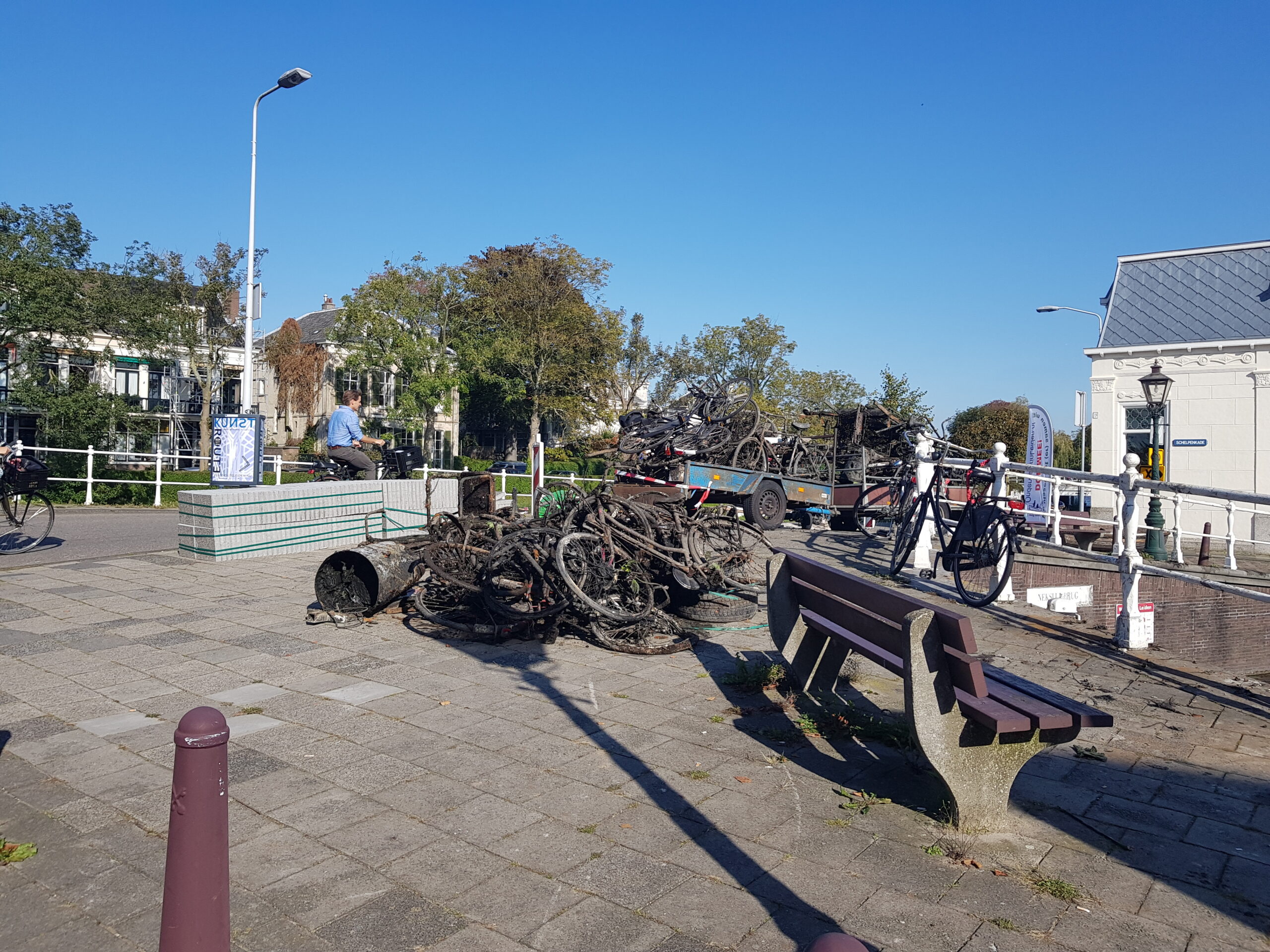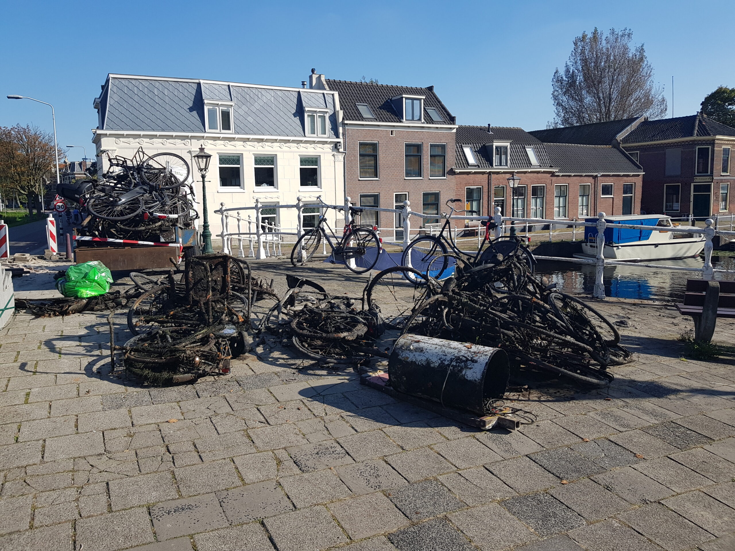 Tijdens de landelijke burendag hebben bewoners van Tuinstad-Staalwijk samen met Aaf Verkade van Onderwater in Leiden een grote schoonmaakactie georganiseerd in het water aan de Schelpenkade. Het resultaat mocht er zijn. Talloze fietsen (34), een centrifuge, een dranghek, een bed, een grote accu, diverse auto-onderdelen, een gezonken bootje en zelfs een aquarium werden er naar boven gehaald.