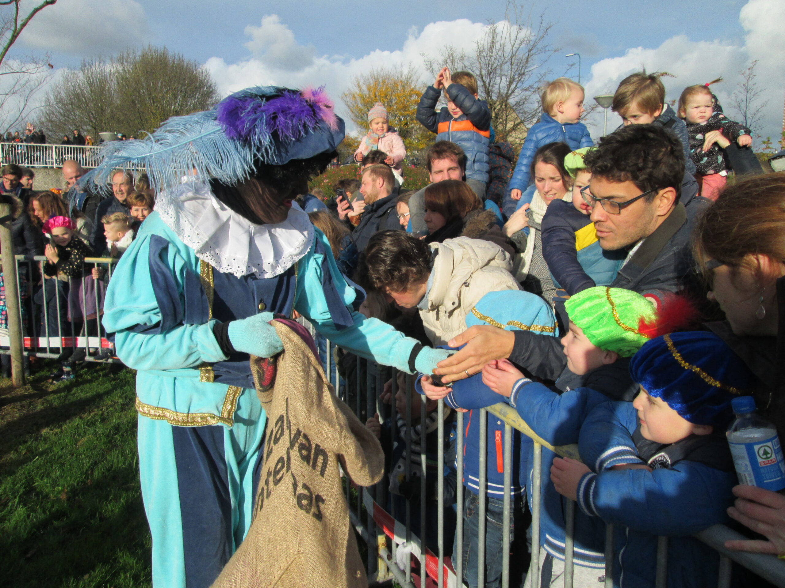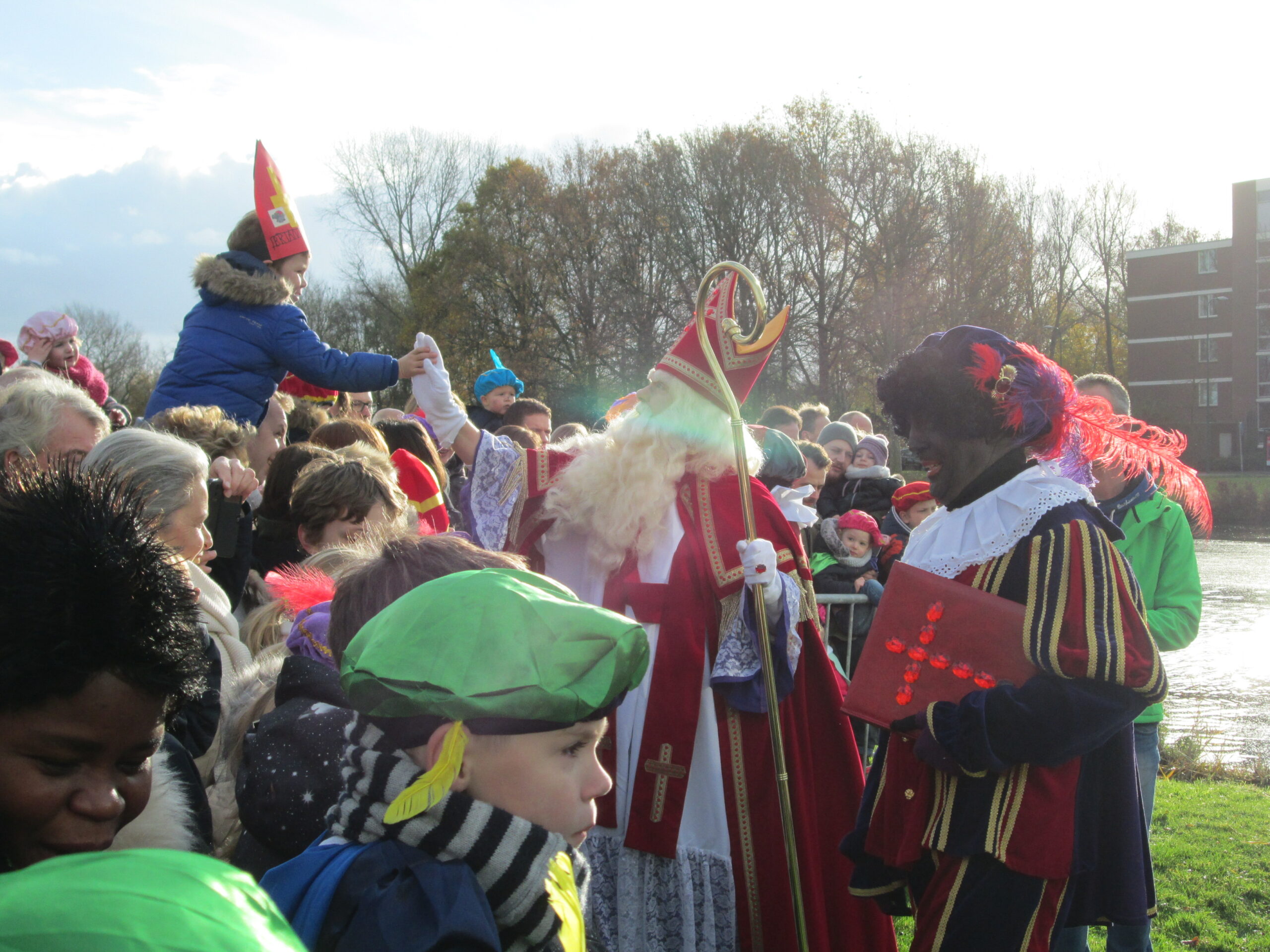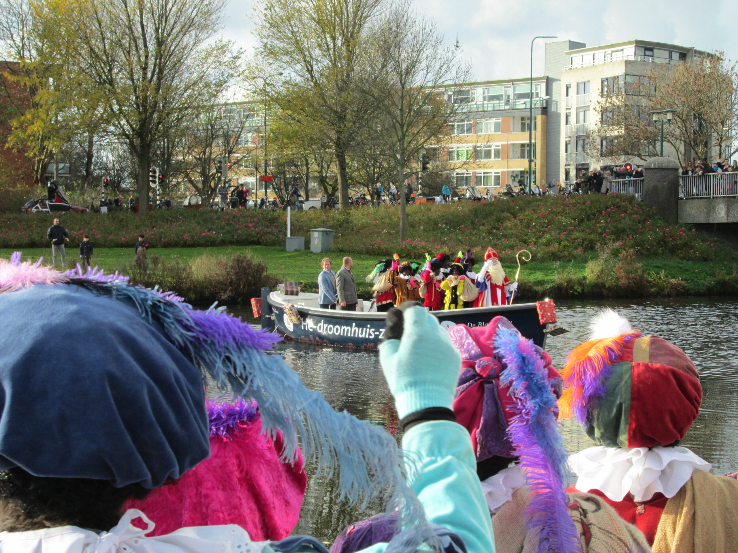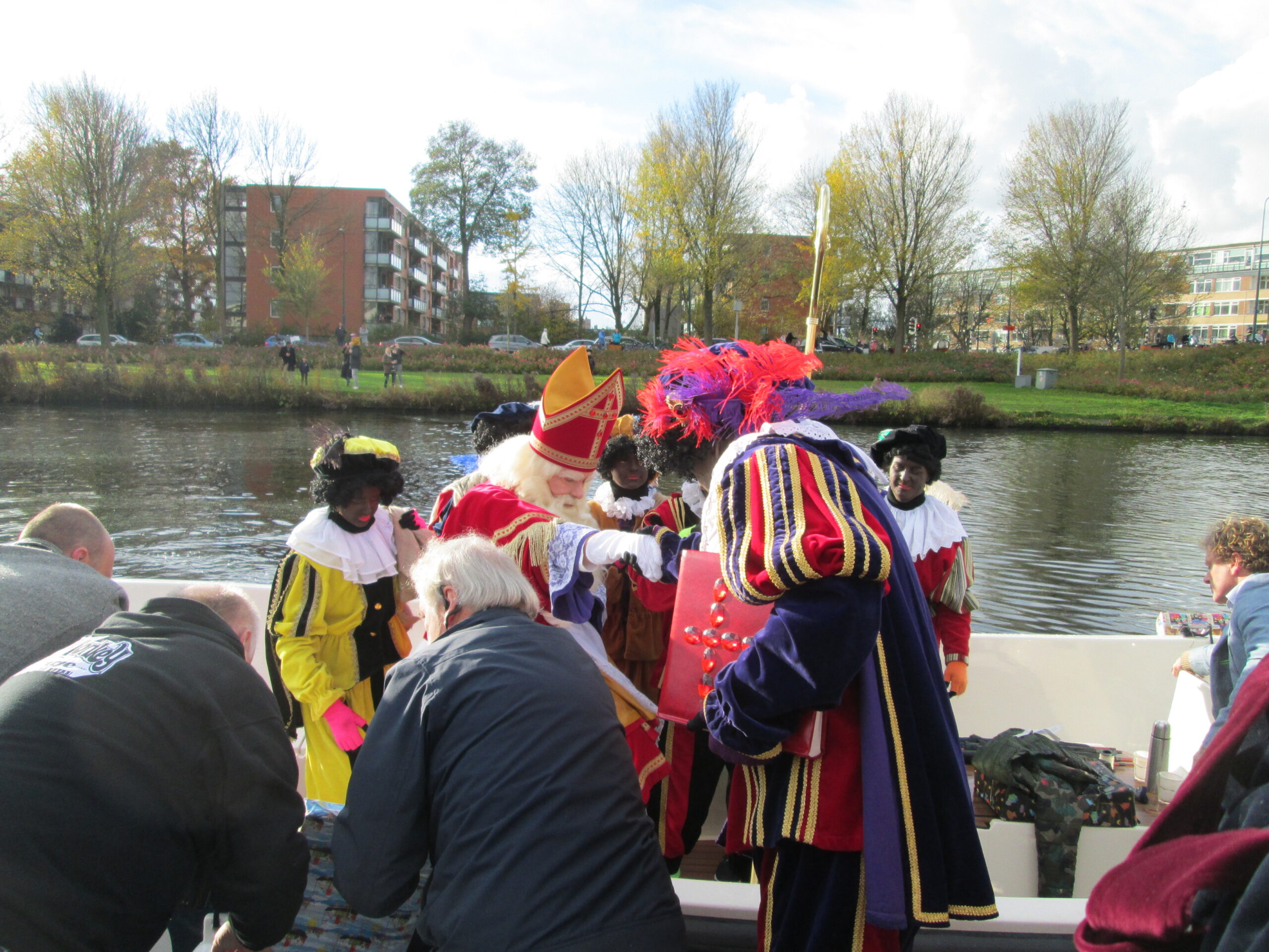 “We hebben ‘ZON AAN’ ge-sms’t naar Oegstgeest”, grapte een van de pieten op de boot van Sinterklaas. En zo was het ook: na een pittige hagelbui vlak voor aakomst van de Sint, brak al snel de zon door. “Met dat lekkere zonnetje erbij zie je al die blije gezichten zo goed, het is een genot om hier te zijn”, aldus Sinterklaas.
