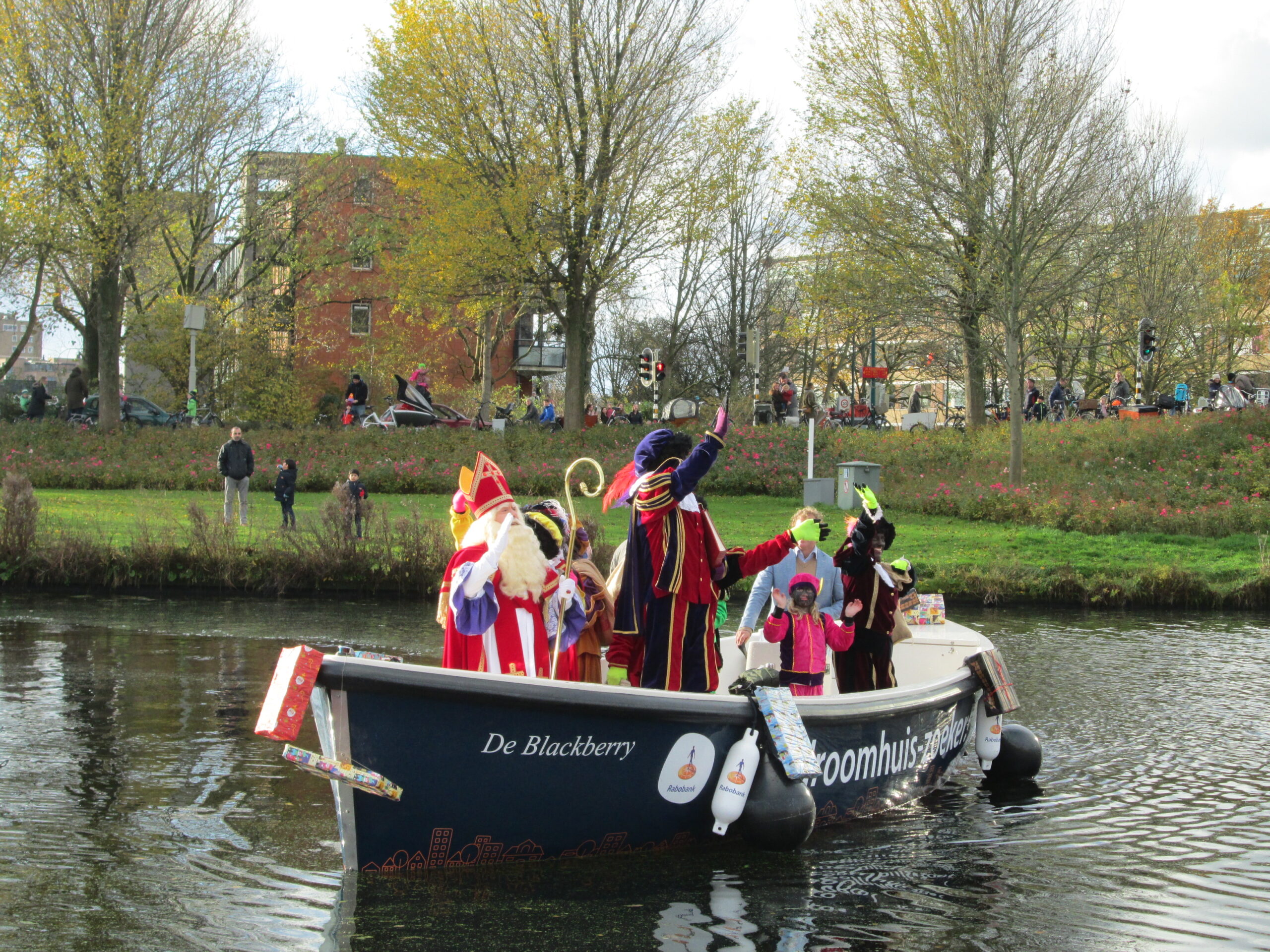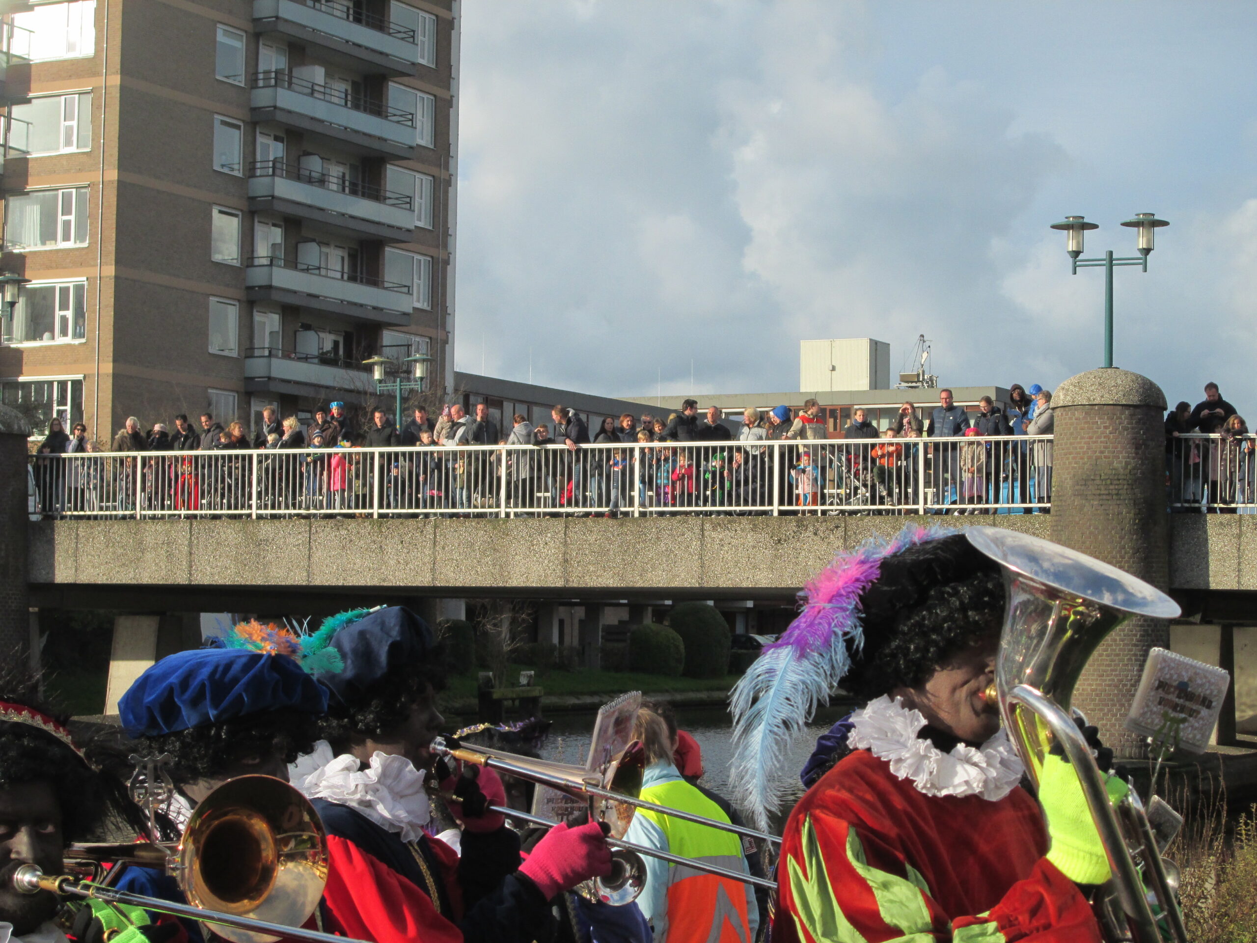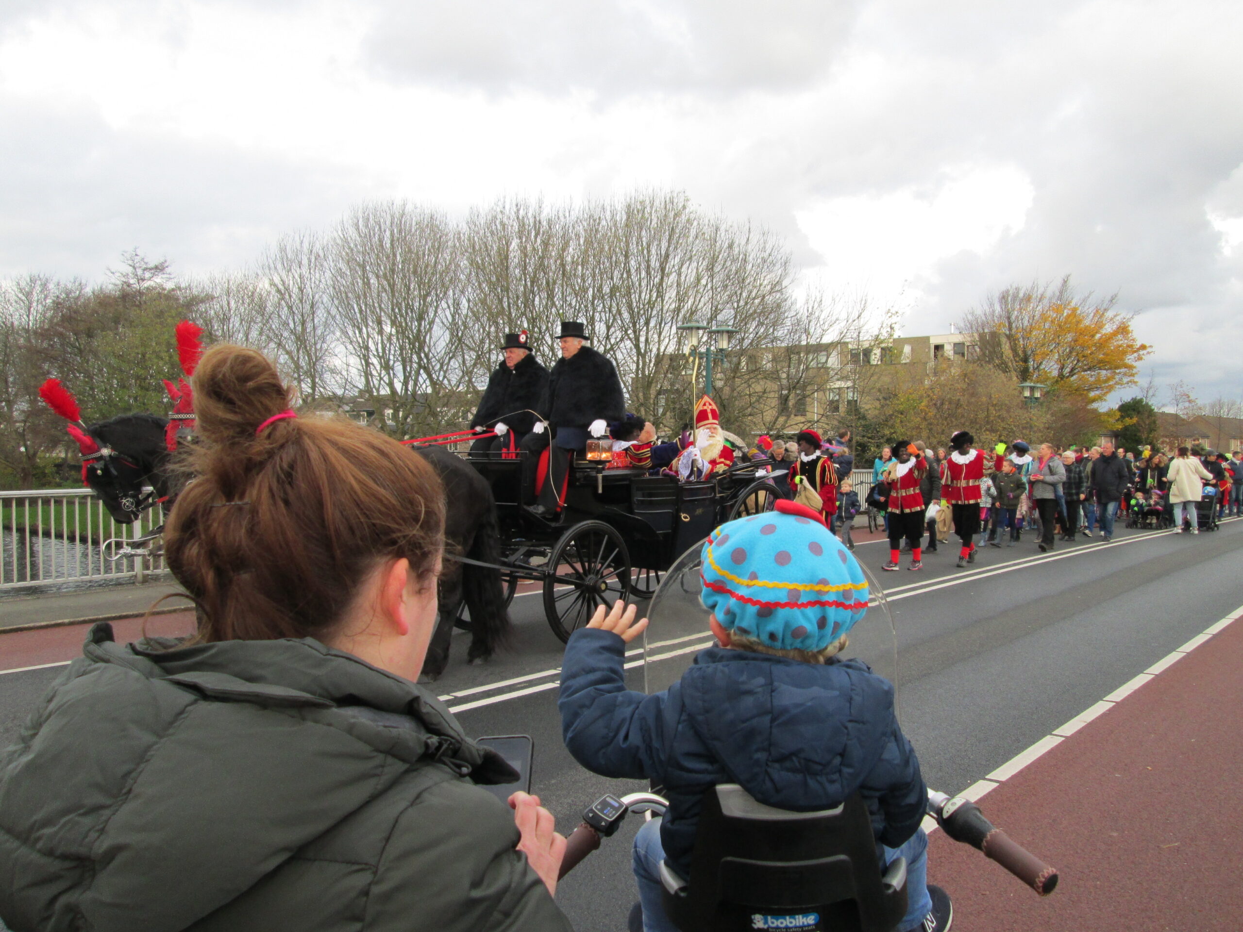“We hebben ‘ZON AAN’ ge-sms’t naar Oegstgeest”, grapte een van de pieten op de boot van Sinterklaas. En zo was het ook: na een pittige hagelbui vlak voor aakomst van de Sint, brak al snel de zon door. “Met dat lekkere zonnetje erbij zie je al die blije gezichten zo goed, het is een genot om hier te zijn”, aldus Sinterklaas.