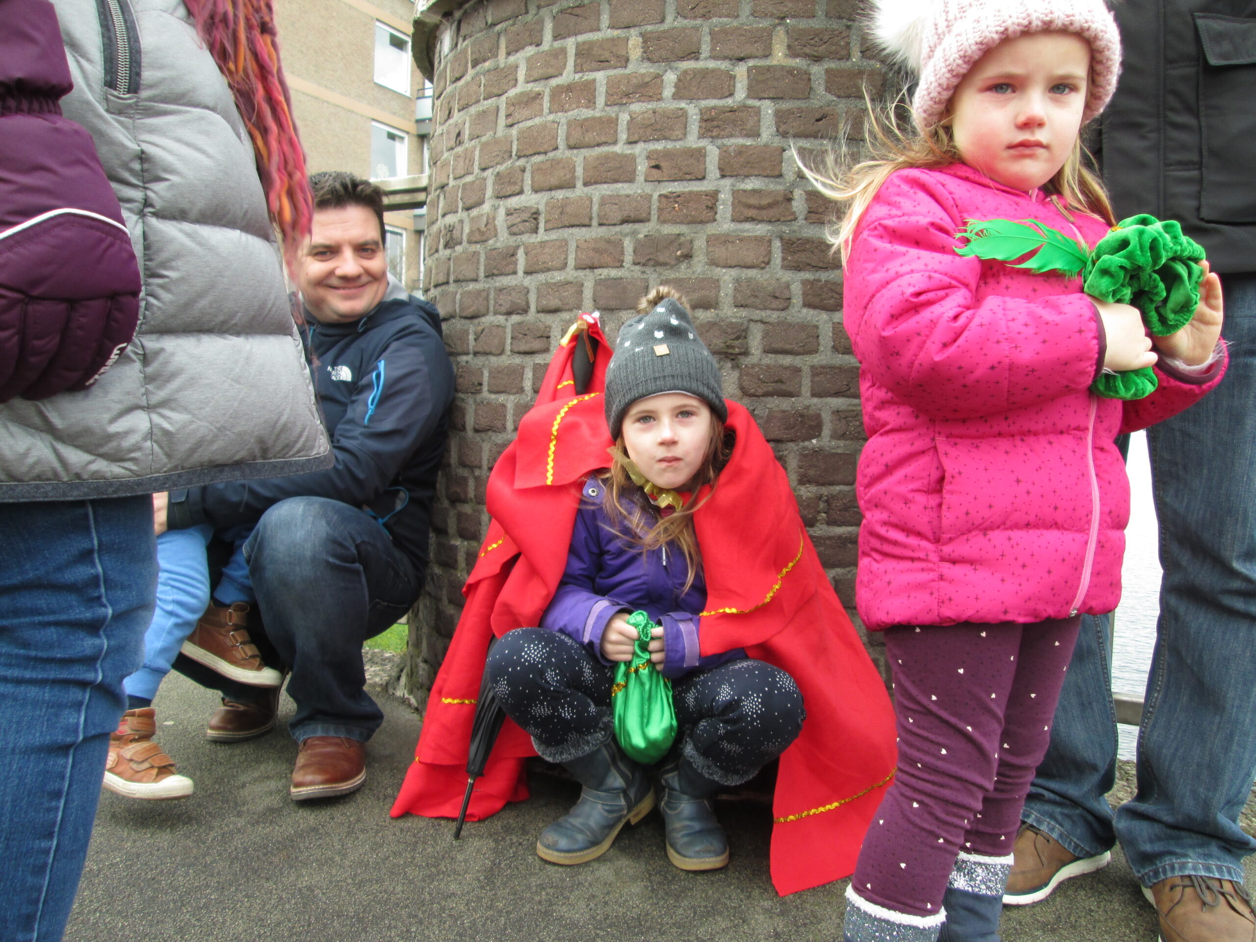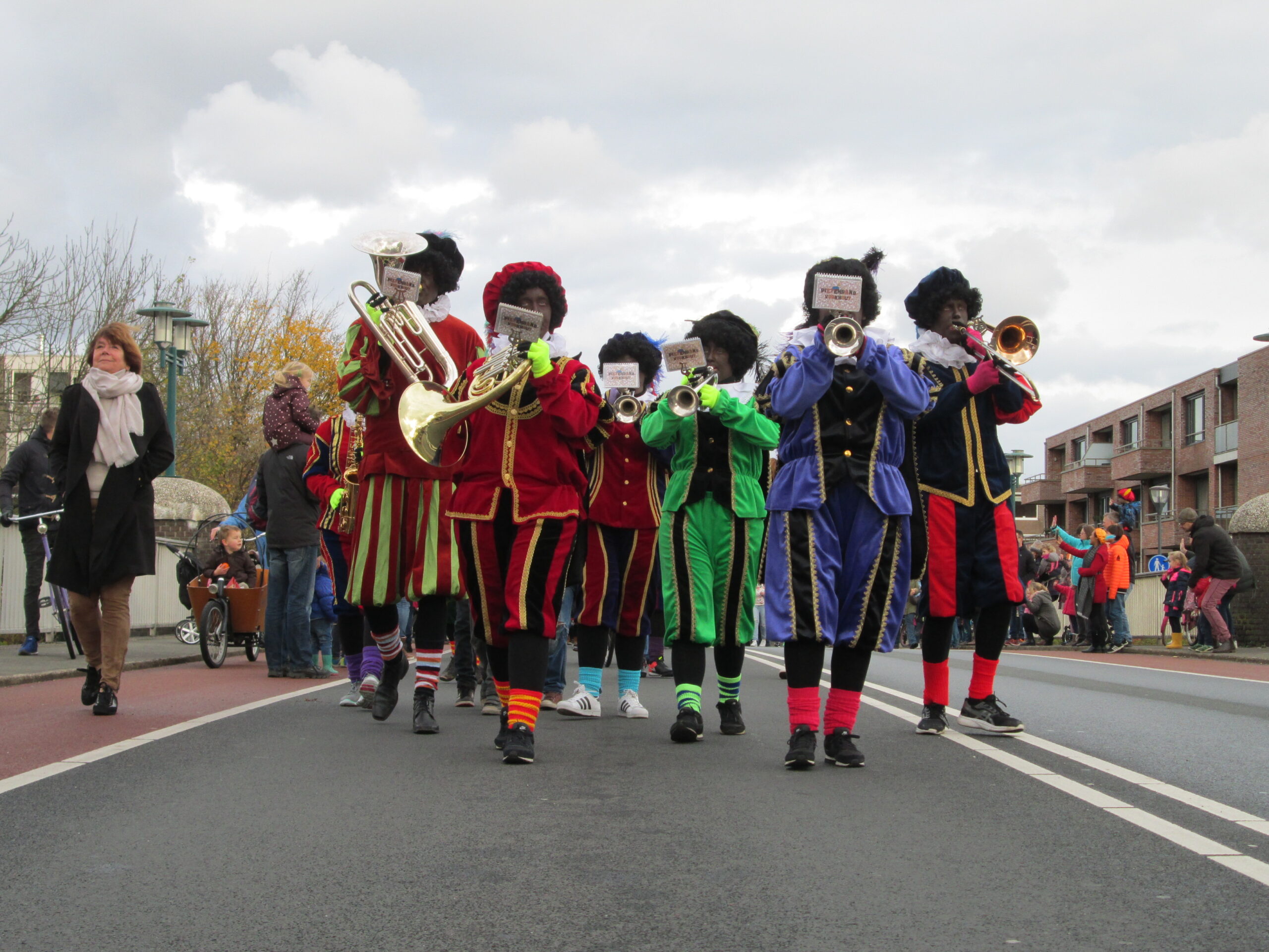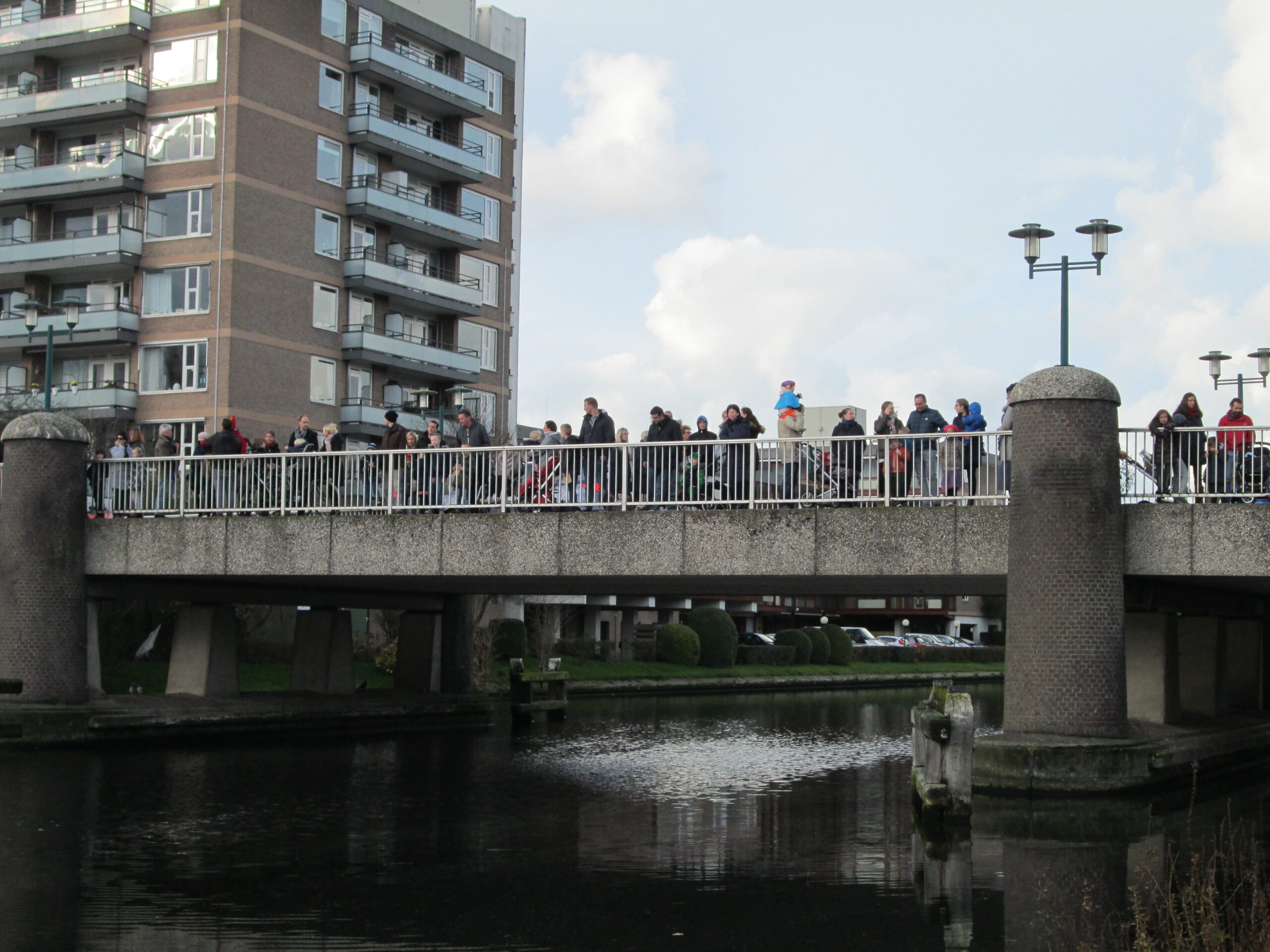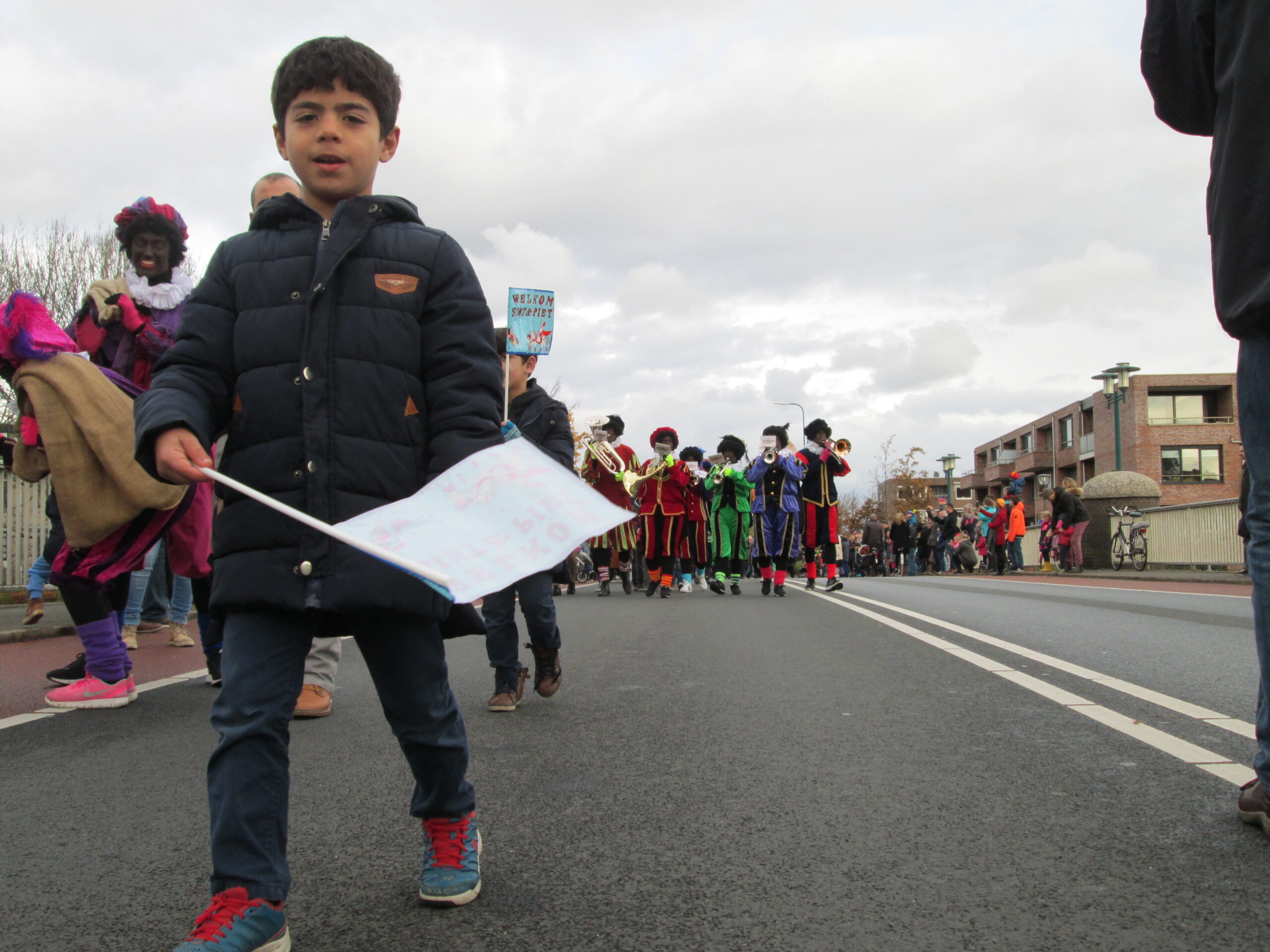 “We hebben ‘ZON AAN’ ge-sms’t naar Oegstgeest”, grapte een van de pieten op de boot van Sinterklaas. En zo was het ook: na een pittige hagelbui vlak voor aakomst van de Sint, brak al snel de zon door. “Met dat lekkere zonnetje erbij zie je al die blije gezichten zo goed, het is een genot om hier te zijn”, aldus Sinterklaas.