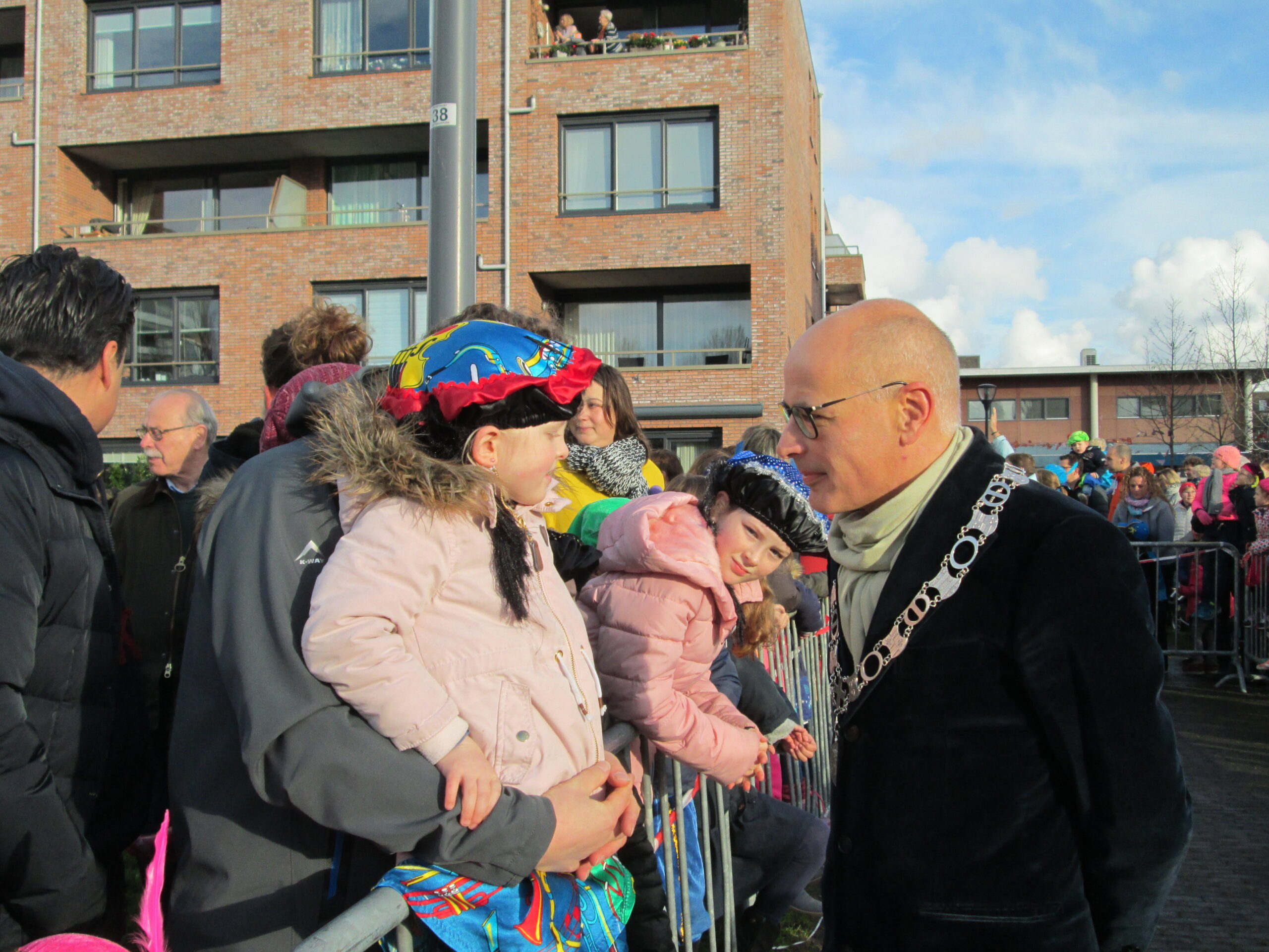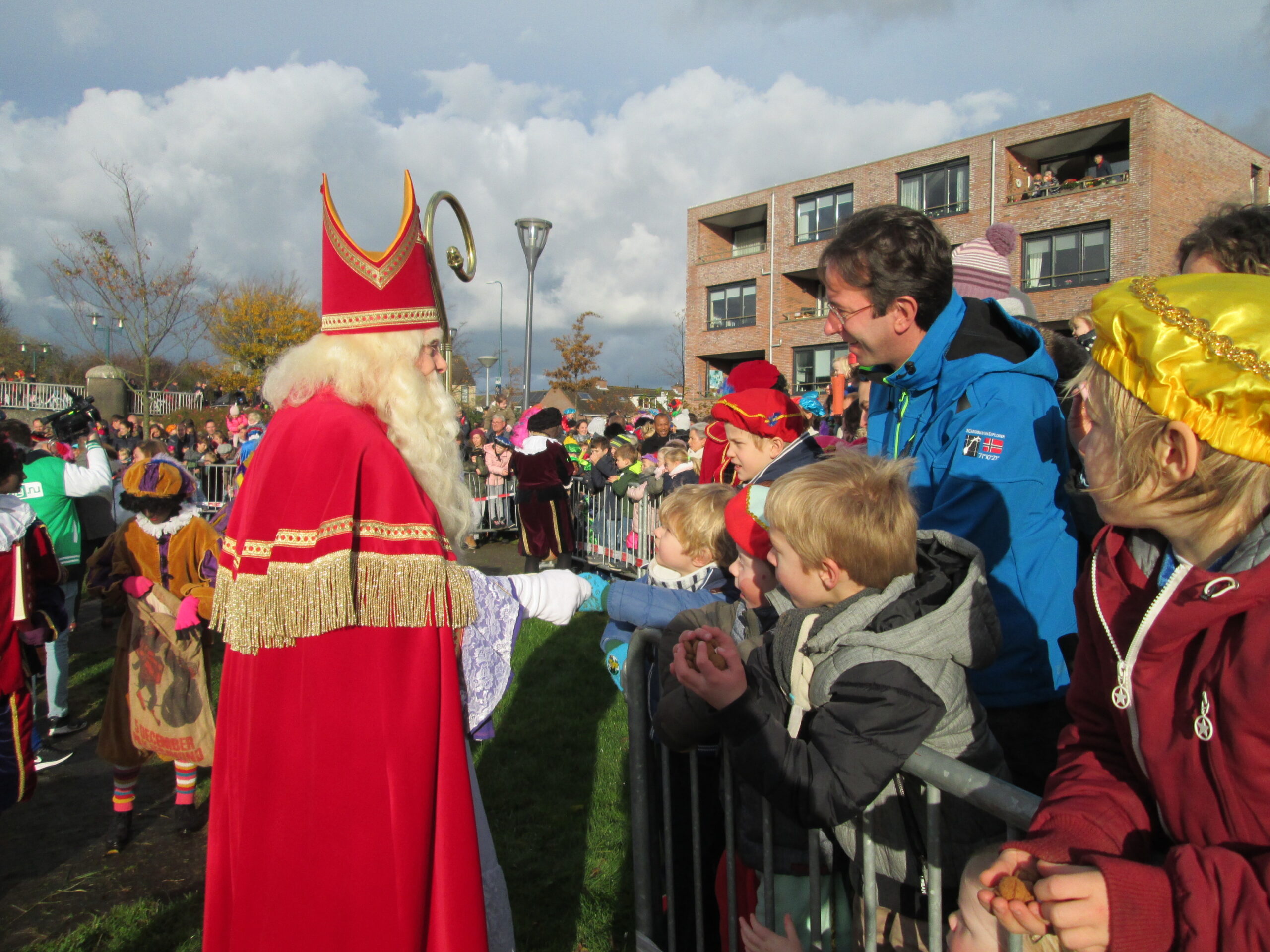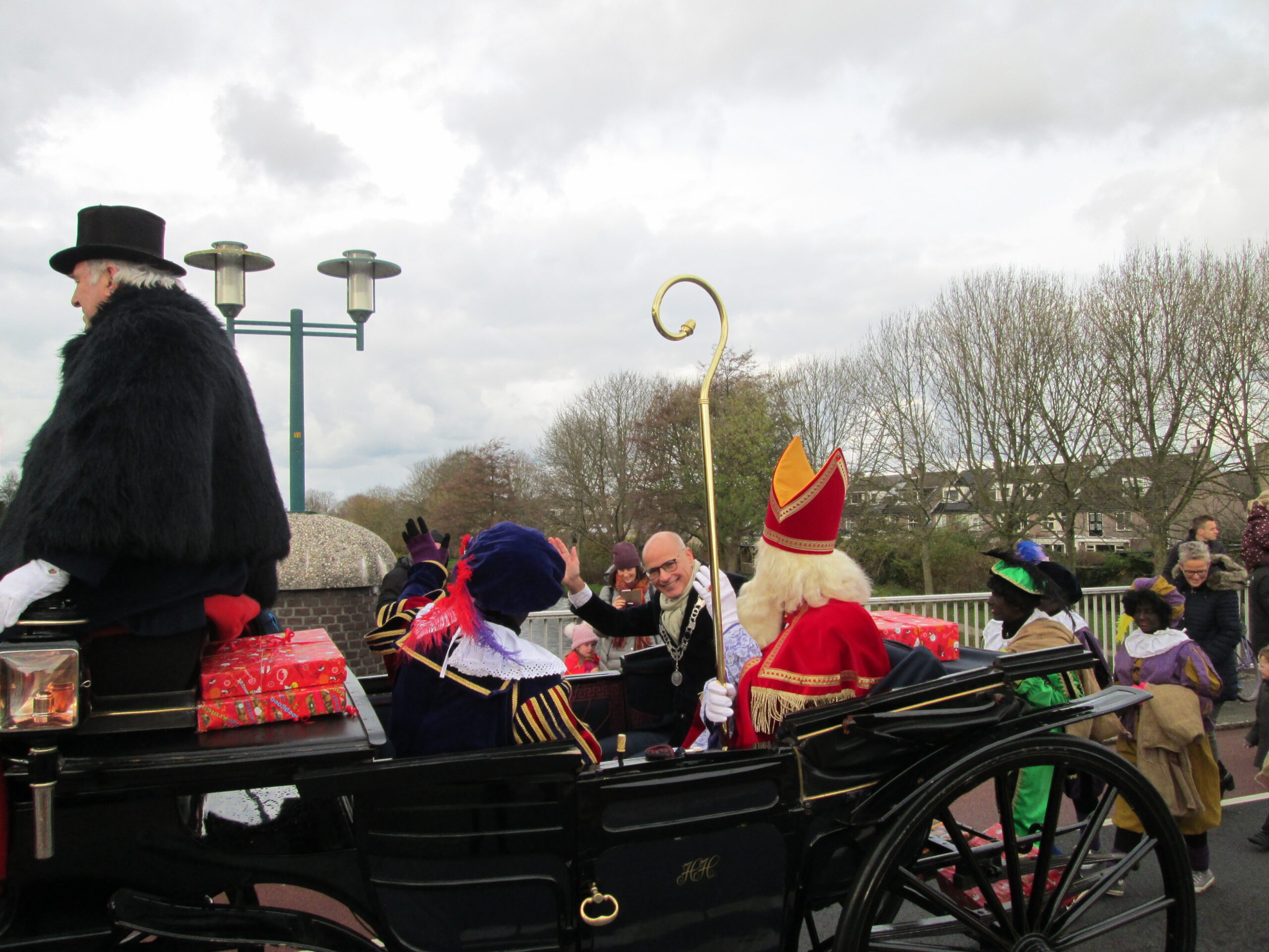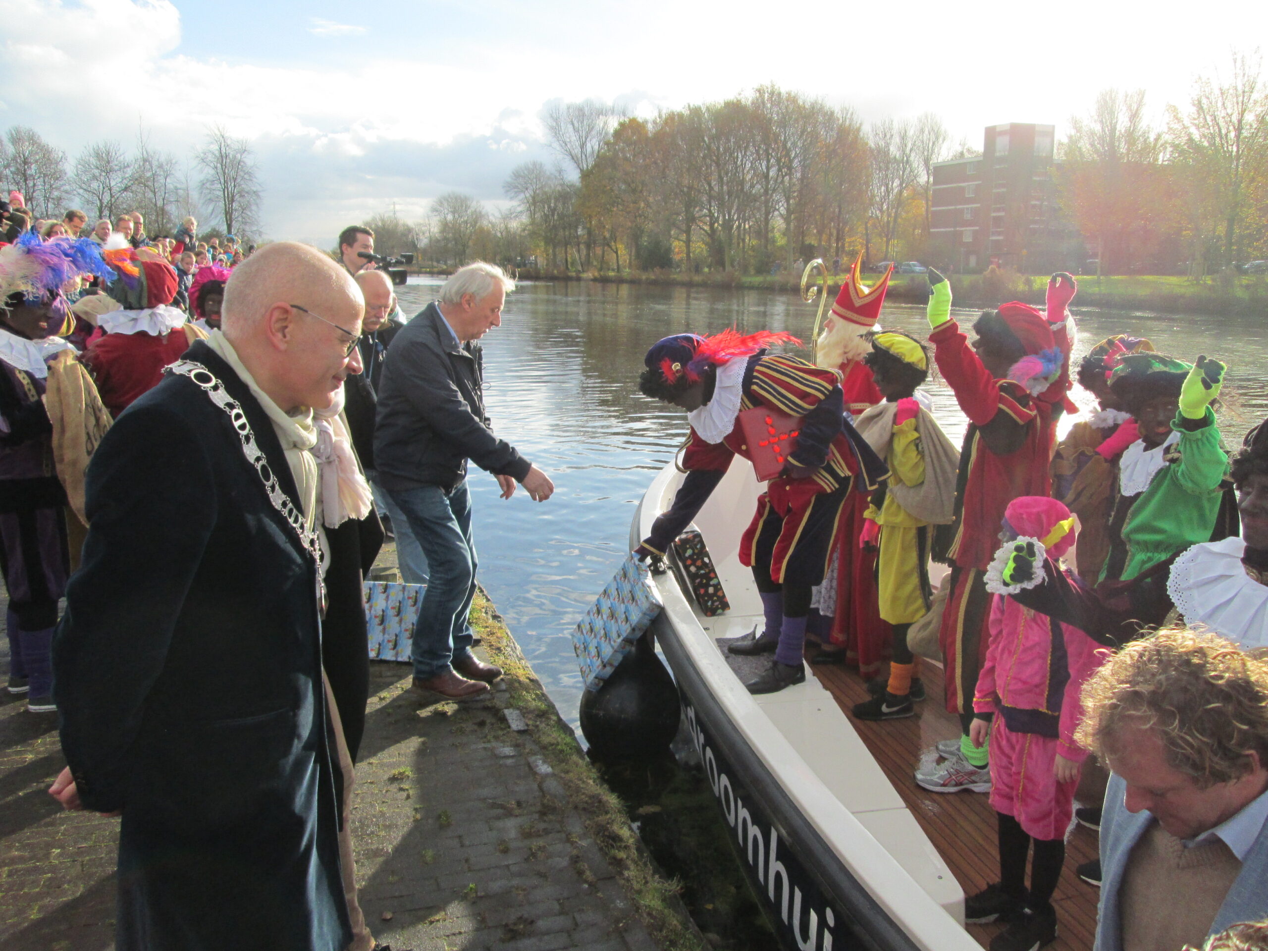 Honderden kinderen hebben Sinterklaas vanochtend verwelkomd op het Boerhaaveplein in Oegstgeest. Om half elf meerde Sinterklaas aan, waarna zijn Pietenband hem begeleidde naar het plein. Daar werd hij welkom geheten door burgemeester Jaensch, die erg blij was met de komst van de Sint.