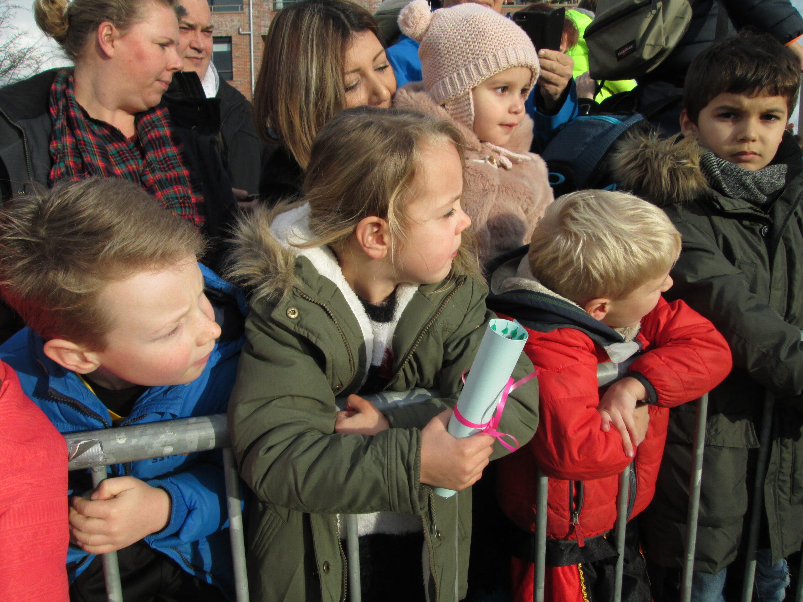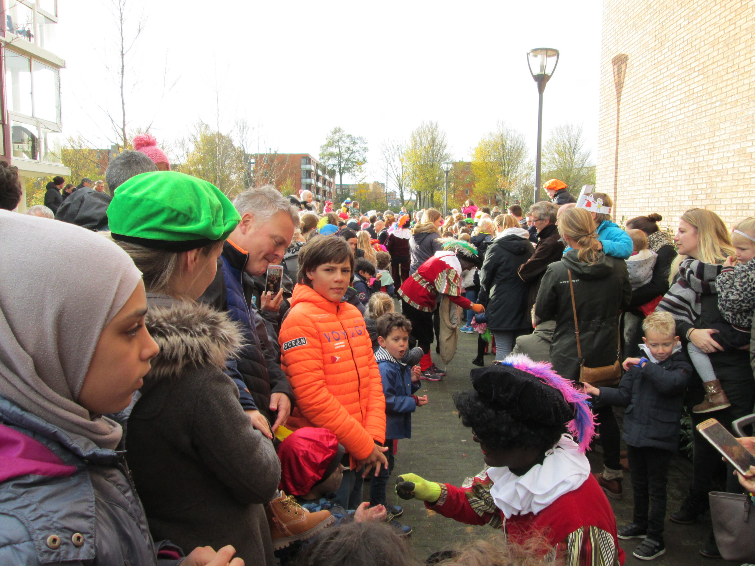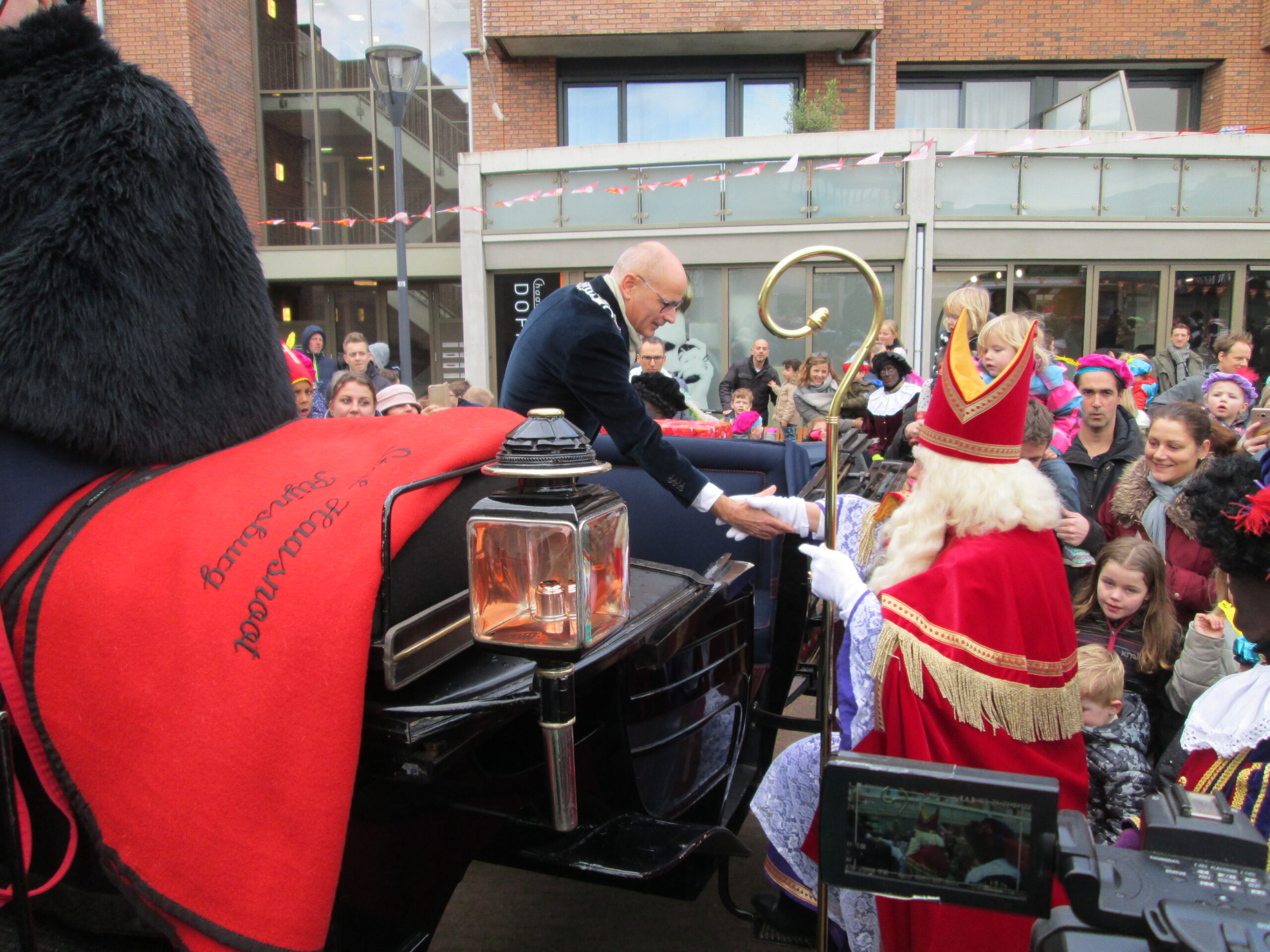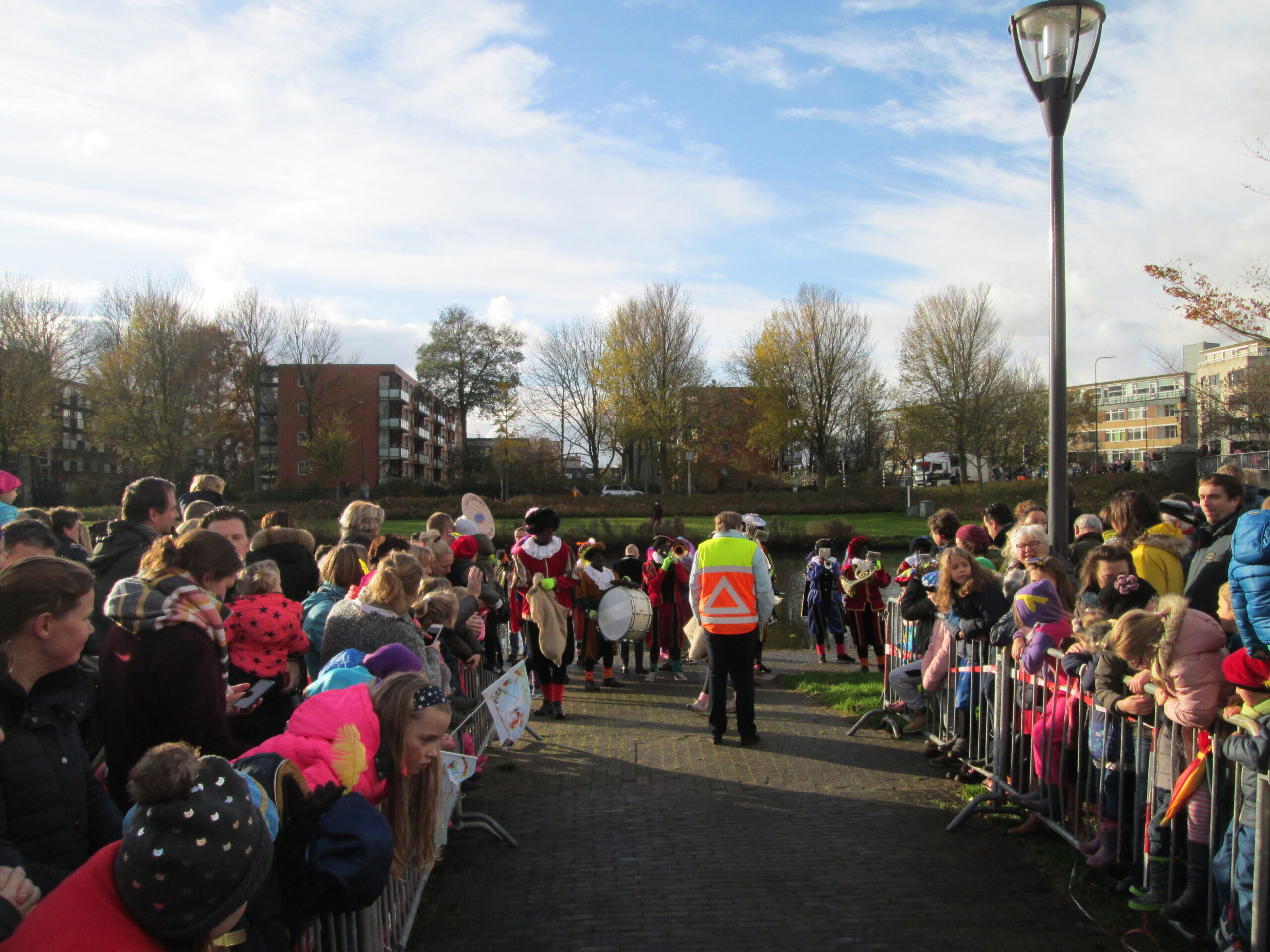 Honderden kinderen hebben Sinterklaas vanochtend verwelkomd op het Boerhaaveplein in Oegstgeest. Om half elf meerde Sinterklaas aan, waarna zijn Pietenband hem begeleidde naar het plein. Daar werd hij welkom geheten door burgemeester Jaensch, die erg blij was met de komst van de Sint.