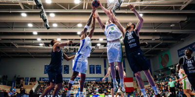 Kort na de start van het vierde kwart gaf het scorebord 66-77 aan in het voordeel van Brussels Basketball en...