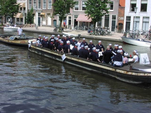 Stond Leiden vorig weekend in het teken van de Zuid-Hollandse Waterdagen, deze week is het de beurt aan de lokale variant; de Leidse Waterdagen. Talloze boten en bootjes met bands varen vandaag en morgen door de Leidse grachten. Op de Beestenmarkt werd alvast een voorproefje genomen op het Culinair Festival dat volgende week wordt gehouden op het Garenmarktplein.