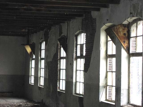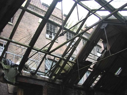 Een van de meest vervallen monumenten in Leiden is de oude dekenfabriek van Scheltema aan de Oude Singel. Ondanks de zeer slechte staat waarin het gebouw verkeert, worden er dit weekend toch rondleidingen gegeven. Entree is op eigen risico staat overal op de gele waarschuwingsborden.
