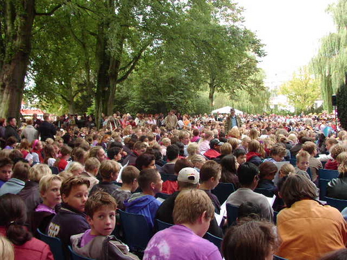 Vanmiddag tussen 13.30 uur en 14.30 uur waren zo’n 1700 middelbare scholieren uit Leiden bijeen gekomen in het Van der Werfpark om samen met ‘burgemeester Van der Werf’ de Minikoraal te zingen. Tussendoor werd ijscoman Pino, bekend bij vele Leidse scholieren, geëerd met de Gouden Speld van de gemeente Leiden.