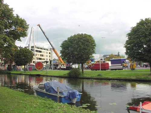 Op het terrein rond molen de Valk wordt sinds zaterdag druk gewerkt aan de opbouw van een van de grootste kermissen van Nederland.