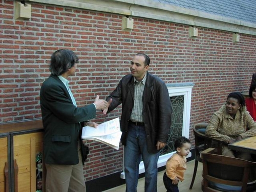 Wethouder Rabbae overhandigt een certificaat aan een nieuwkomer uit Nepal. (foto: Chris de Waard).