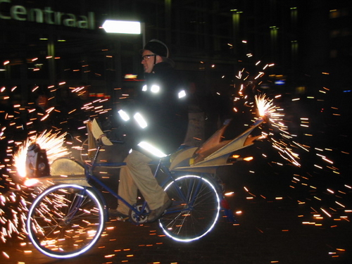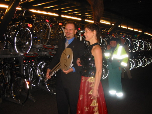 Gistermiddag heeft wethouder Hillebrand de nieuwe fietsenstalling aan het Stationsplein geopend. De feestelijke opening ging gepaard met een optreden van een aantal danseressen en een showtje van een ‘vuurwerkfiets’. Ook het de nieuwe taxistandplaats werd in gebruik genomen. De taxi’s staan voortaan aan de stadszijde.