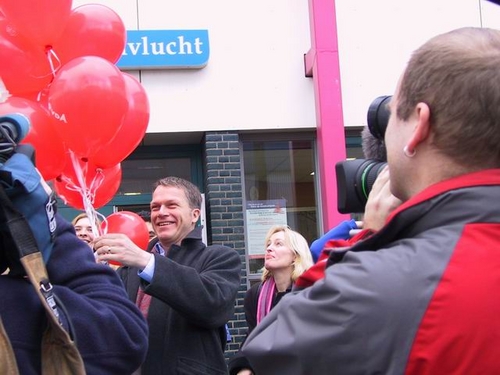 Wouter Bos heeft vanmiddag onverwachts Leiden aangedaan tijdens de PvdA-campagne. Tijdens een bliksembezoek aan buurthuis Vogelvlucht aan de Boshuizerkade presenteerde de PvdA-lijsttrekker het plan ‘Nooit meer jeugdwerkloosheid’. Vervolgens discussieerde hij met jongeren over dit thema. Na afloop van de bijeenkomst liet Bos een flink aantal rode ‘proefballonnen’ op. Onder de aanwezigen ook voorzitter de Boer van MKB Nederland. Het MKB heeft een project om 10.000 jongeren aan een baan te helpen. De overheid draagt daar 200 euro per leerling aan bij. De PvdA wil daar 1.000 euro van maken.
