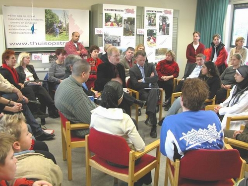 Na de presentatie van de PvdA-plannen ging Wouter Bos in gesprek met jongeren die betrokken zijn bij het project Thuis op Straat. Dit is een project waarin jongeren werken en leren combineren, stagiaires uit het MBO krijgen er een leerwerkplaats. Het project is een goed voorbeeld van hoe het convenant straks kan gaan werken. De jongeren hamderden erop dat het belangrijk is dat ook ouders betrokken zijn bij de opleiding van hun kinderen. Ook benadrukten de jongeren dat de combinatie van leren en werken voor veel leerlingen op het VMBO en MBO heel stimulerend is.