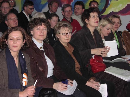 V.l.n.r.: Fenna Vergeer (SP), Edith Schippers (VVD), Ursie Lambrechts (D66), Marijke Vos (GL), Jet Bussemaker (PvdA) en Mirjam Sterk (CDA). Niet op de foto Gonny van Oudenallen (LPF). Foto's: Chris de Waard.