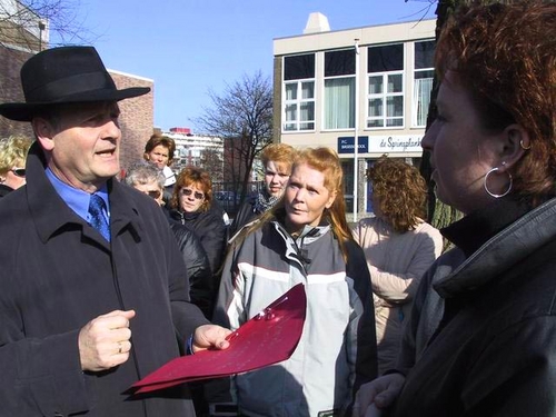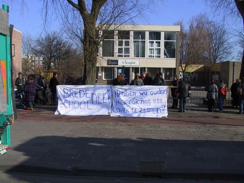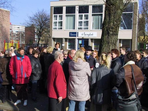 Vrijdagmiddag boden ouders van de Protestants Christelijke (PC) basisschool De Springplank in de Sumatrastraat in Leiden handtekeningen aan aan de directeur van de PC Schoolvereniging, dhr. Visser. De Wethouders Pechtold (onderwijs) en Buijing (wijkwethouder) waren verhinderd. Zo’n 80 ouders van leerlingen van de Sprinkplank zijn boos, omdat ze vrezen dat de identiteit van hun school verloren gaat als deze opgaat in één grote Brede School. Wethouder Pechtold garandeerde hen vrijdagavond via Radio Holland Centraal dat dat niet zal gebeuren. Over een week gaan de ouders bij Pechtold ‘op de koffie’ om de pijnpunten te bespreken.