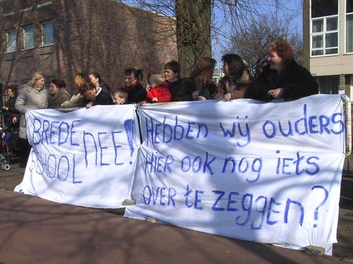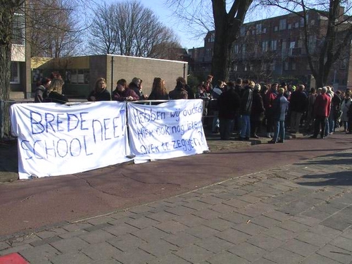 De Brede School is volgens Pechtold dé oplossing voor het verschijnsel ‘zwarte school’. “Hoewel de klassen blijven zoals ze zijn, zullen de leerlingen buiten de lessen om wel veel meer gaan mixen”, aldus Pechtold. Van de vier basisscholen die, als de plannen doorgaan, opgaan in de Brede School, is De Sprinkplank de ‘witste’. Namens de protesterende ouders ontkennen Caroline Kaltner en Lydia van den Berg dat ze tegen de plannen zijn uit angst dat ‘hun’ school daardoor zwarter zal worden. Ze vrezen dat het Protestants Christelijke onderwijs, iets waar ze bewust voor hebben gekozen toen ze hun kinderen naar De Sprinkplank stuurden, verloren zal gaan. Ook vinden ze dat ze slecht op de hoogte worden gehouden door de gemeente. Ze vroegen daarom aan wethouder Pechtold om een duidelijke brief waarin de plannen en de gevolgen duidelijk worden uitgelegd. “Die brief gaan wij samen schrijven,” aldus Pechtold.