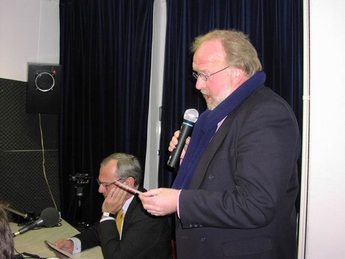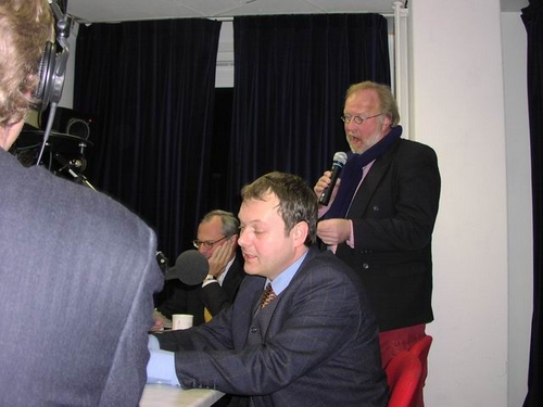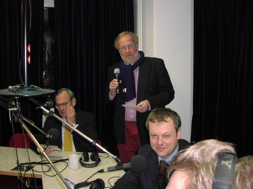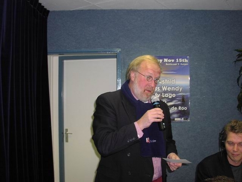 Eric Filemon spreekt de kandidaten toe. In het midden interviewer Chris de Waard. (foto's: Robert Barendse).
