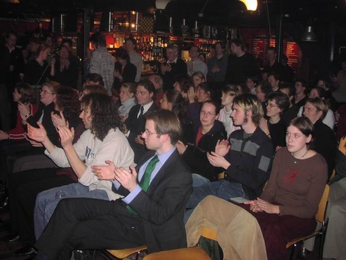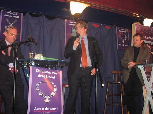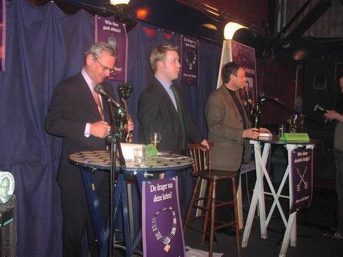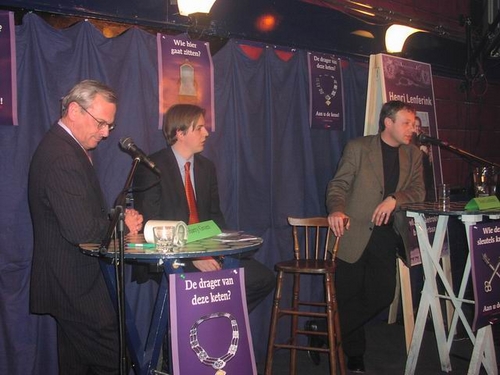 De avond ging verder aan de hand van een aantal stellingen. “Garandeert de gemeente een kamer voor elke student?” Groen noch Lenferink kon dat toezeggen. Wel vonden ze allebei dat de gemeente voorwaarden moet scheppen. Lenferink wil verder dat leegstaande panden worden gebruikt voor huisvesting. “In Zuid-West staat al drie jaar een verzorgingstehuis leeg. Schandalig dat daar niks mee gedaan is.” Alletwee bleken na enige discussie met de zaal voorstander van het bekijken van de mogelijkheden voor legalisering van studentenpanden die nu gedoogd worden, maar eigenlijk niet in het bestemmingsplan passen. “Maar je mag nooit marchanderen met de veiligheid,” vond Lenferink. “Zeker niet! toen ik burgemeester van Landsmeer was, was onze brandweer betrokken bij de ramp in Volendam. Afwijken van de regels is onbespreekbaar,” deed Groen er een schepje bovenop. “Ik heb de pest aan gedogen, maar er is niets op tegen om pand voor pand na te gaan of de bestemming kan worden gewijzigd als het feitelijk gebruik als studentenhuis al vijf tot zeven jaar duurt.”