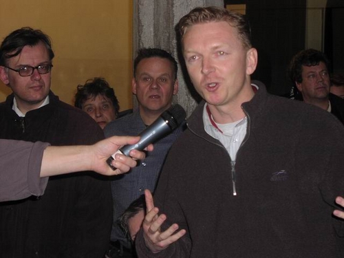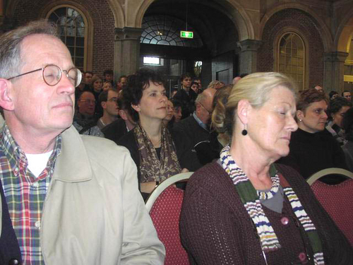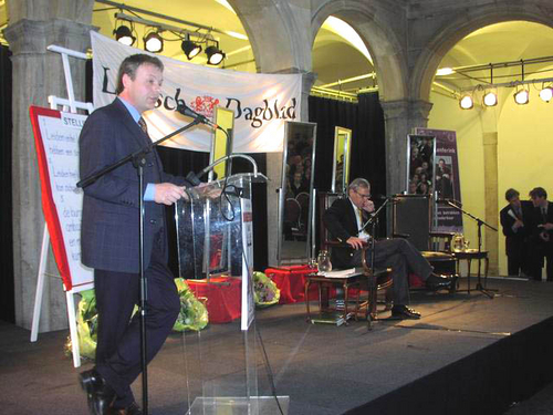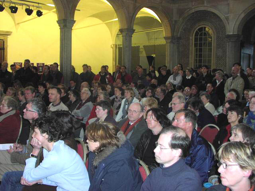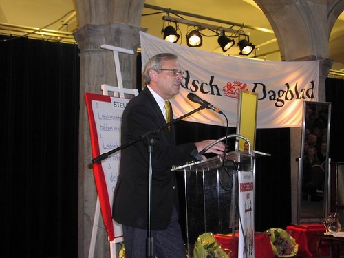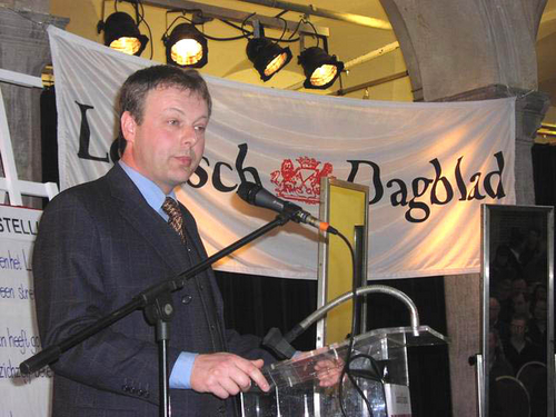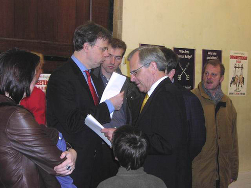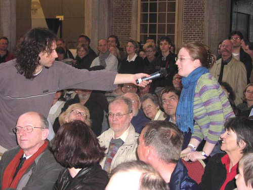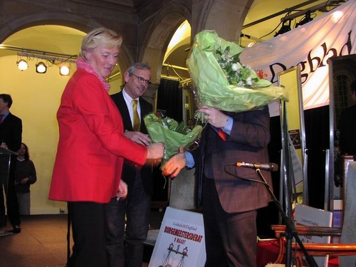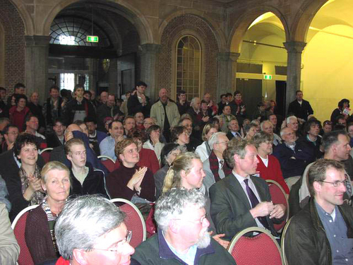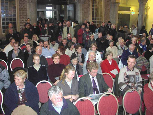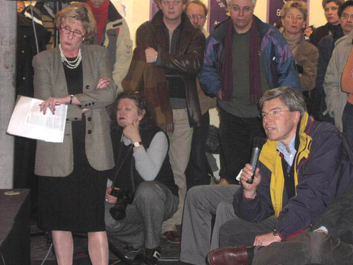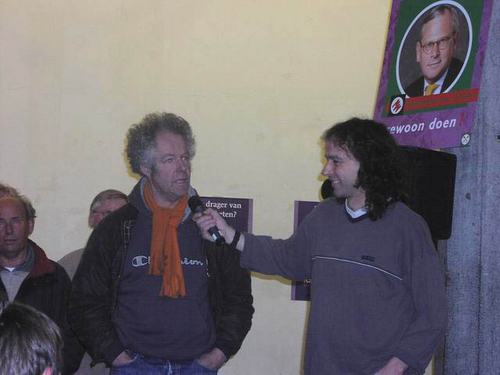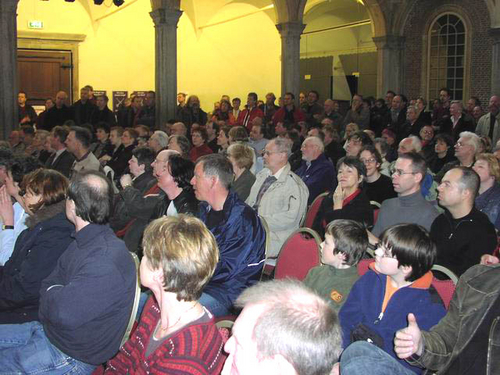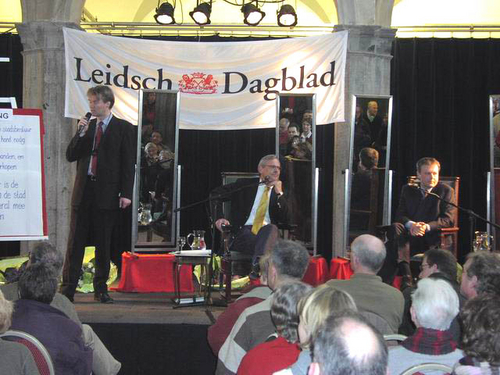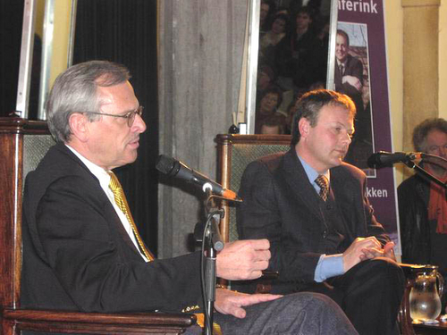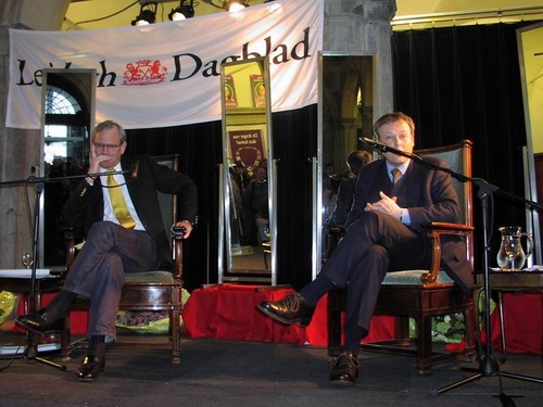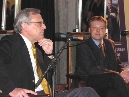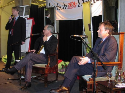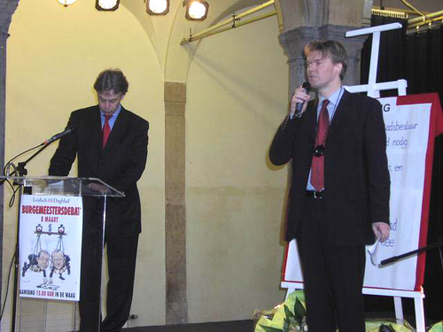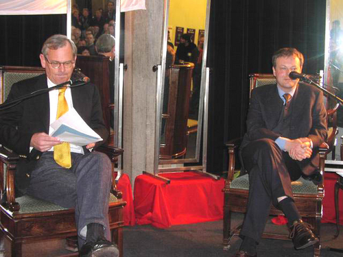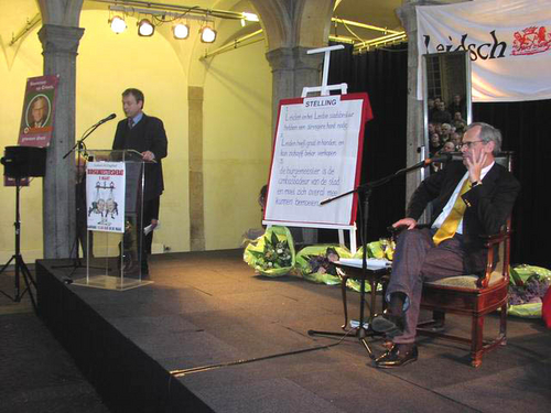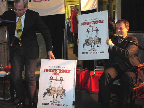 Harry en Henri tijdens het op één na laatste burgemeestersdebat voor het referendum op 11 maart (Foto's: Chris de Waard).