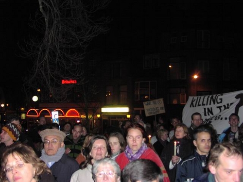 Tussen de 100 en de 200 mensen hebben donderdagavond in het centrum van Leiden gedemonstreerd tegen de Amerikaanse aanvallen op Irak. Vanaf het Stadhuisplein liepen de demonstranten naar het verzetsmonument bij Molen de Valk. Daar werden verschillende toespraken gehouden. Vervolgens liep de stoet via de Langegracht naar de Koppenhinksteeg waar een afsluitende manifestatie wordt gehouden. Volgens de organisatie liepen er ruim 600 mensen mee. De politie begeleidde de demonstratieve tocht en hield het verkeer tegen.