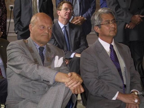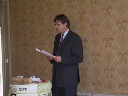 Burgemeester Lemstra en de Japanse ambasadeur in Nederland, dhr. H. Koike woonde de officiele start van de renovatie donderdag bij (foto's: Bram Pater).