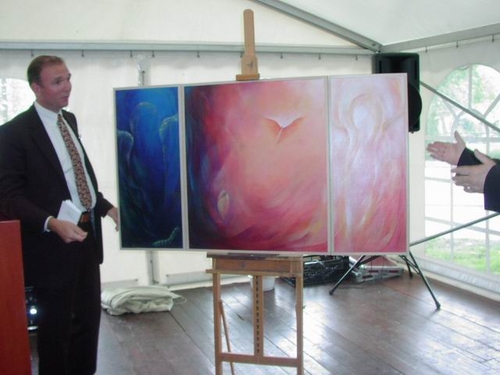 Afgelopen vrijdagmiddag werd aan de Plantage het Hospice Issoria geopend. Een hospice is in de eerste plaats een ‘huis met liefde voor het leven’. Een woonhuis waar de verzorging is ingesteld op mensen die verwachten binnenkort te sterven. Het schitterend verbouwde pand heeft een mooie tuin, een huiskamer en vijf gastenkamers. De bekende schrijver Huub Oosterhuis onthulde een drieluik dat gemaakt werd door Thea van Haarlen.