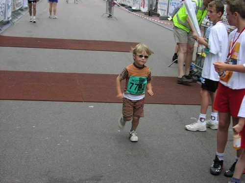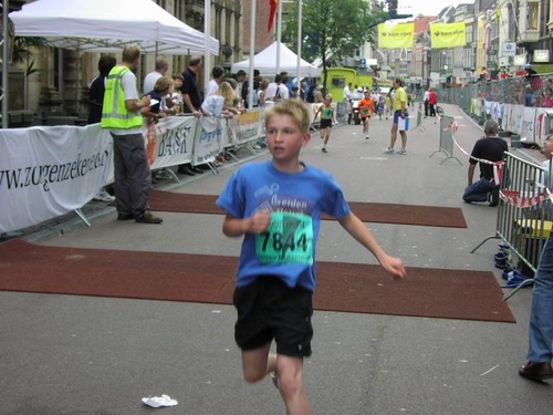 Oussama el Kharras kwam als eerste jongen over de finish bij de Kinderloop (Foto's: Chris de Waard & Marjo Heemskerk).