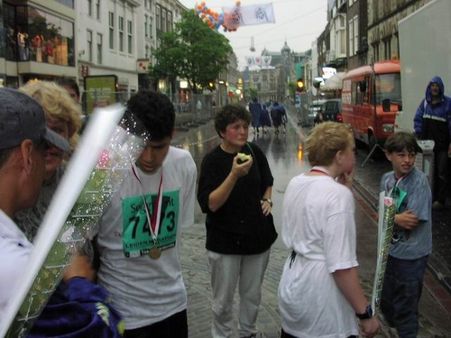 De Amsterdamse Oussama el Kharras is zondag als eerste jongen binnengekomen bij de Kinder- en G-loop van de Leiden Marathon. Erik Heijster uit Nieuwerkerk A/d Ijsel werd tweede en Menno Dalmijn uit Leiden kwam als derde over de finish. Bij de meisjes won Liesbeth Boskamp (Leiden). Tweede werd Loes Snell uit Den Haag en derde Melanie de Krom, eveneens uit Den Haag. Martijn de Wit uit Leiden was de eerste jongen bij de GehandicaptenLoop. Tweede en derde werden Dimar Alphick en Samir van der Steeg, beiden ook uit Leiden. Gabriella de Wekker won in de G-loop bij de meisjes. Kim de Boer werd tweede en Jilliah Suitela derde. Ook deze twee komen uit Leiden. Hieronder het totaaloverzicht. In het fotoverslag de voorbereidingen, de start, finish en de prijsuitreikingen.
