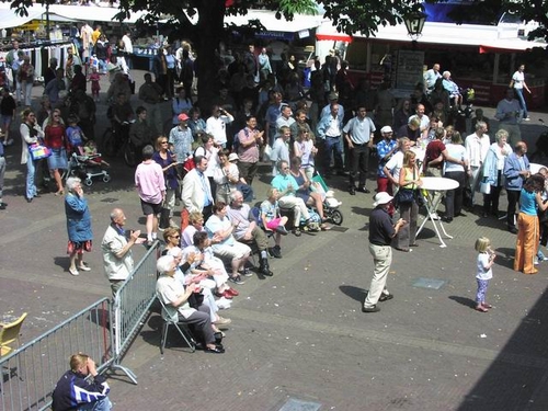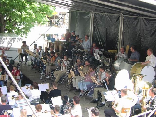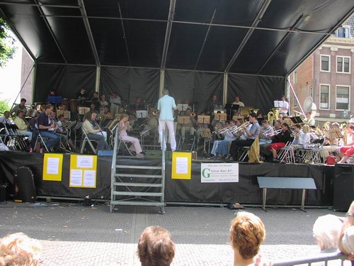 Zaterdagmiddag werd op het Stadhuisplein voor de derde keer de Leidse Muziek Play In gehouden. Bij dit evenement kan iedereen uit de harmonie, (drum)fanfare en brassband-wereld die een blaas- of slaginstrument bespeelt spontaan en gratis – met het eigen instrument – meedoen. Na twee openbare repetities werd er om 15.00 uur een concert gegeven. Er waren zo’n 100 deelnemers, enkele tientallen meer dan vorig jaar.