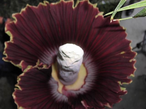 De bloeiende Amorphophallus titanum, reuzenaronskelk uit Sumatra, van boven gezien (foto's: Chris de Waard).