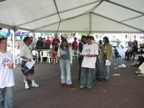 Bij de Beestenmarkt waren de hele zaterdag optredens van diverse bandjes, het Viswijvenkoor Leiden en Zeemanskoor Rumor Di Mare. Op de Leidse grachten voeren de hele dag bootjes met bands en zelfs een draaiorgel. ’s Avonds gaf de bekende Leidse muzikant Rob Baars met een gelegenheidsband nog een optreden in de feesttent op de Beestenmarkt.