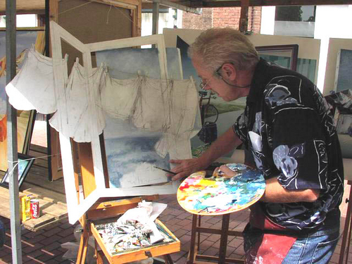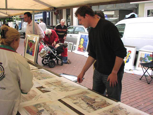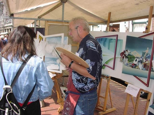 Op de kunstmarkt op de Breestraat werd zelfs live geschilderd. (foto's: Chris de Waard).