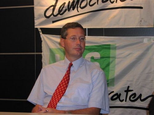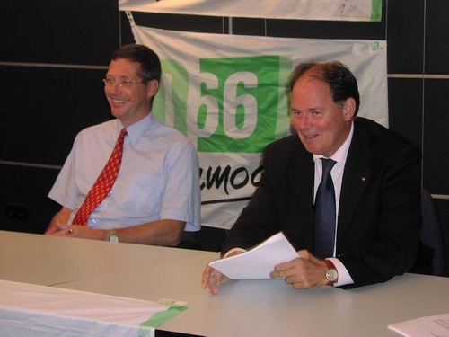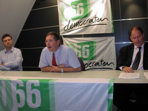 Ruud Hessing (links) wordt door D66 Leiden voorgedragen als opvolger van Wethouder Pechtold. Rechts D66-fractievoorzitter van Meenen. (foto's: Chris de Waard).