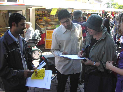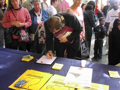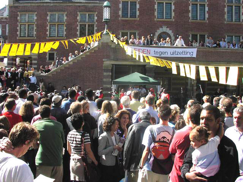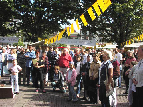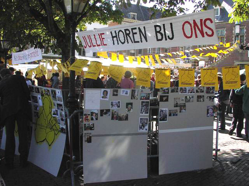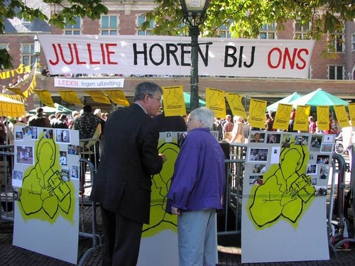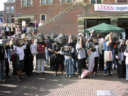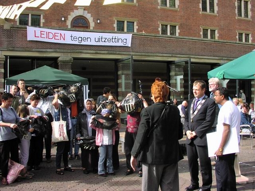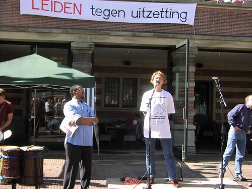 Honderden Leidenaren hebben zaterdag de manifestatie bijgewoond tegen het huidige asielbeleid van het kabinet. De deelnemende organisaties willen alsnog een specifiek pardon voor de 67 uitgeprocedeerde asielzoekers in Leiden die niet aan de nieuwe regels van VVD-minister Verdonk voldoen en dus het land uitgezet worden. Het gaat om mensen die al jaren in Leiden wonen en waarvan de kinderen vaak hier geboren zijn en op school zitten.