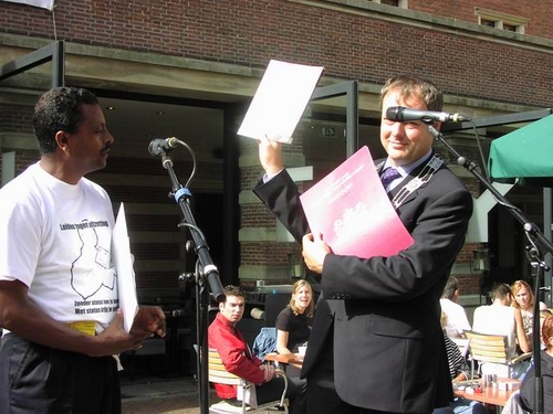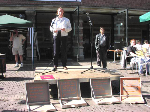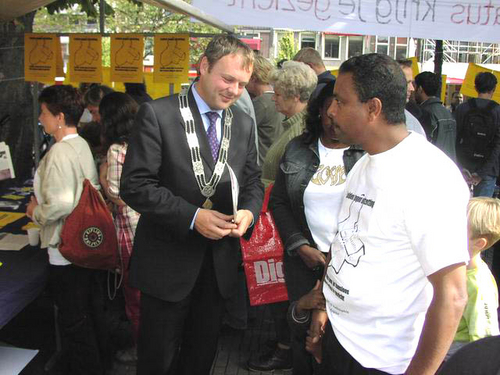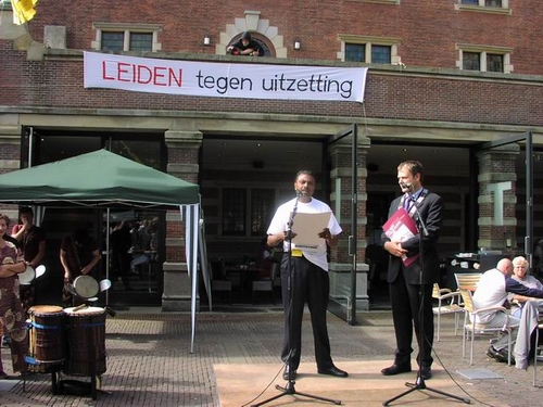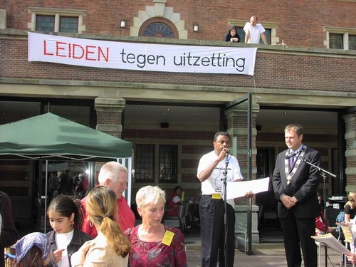 De manifestatie werd geopend door burgemeester Lenferink die in zijn toespraak een warm pleidooi hield voor een ruimhartiger vreemdelingenbeleid: “Je kunt dit niet met regels afdoen, als je gevoel zegt dat het niet klopt.” Hij kreeg veel bijval van zowel publiek als andere sprekers. Daaronder waren bekende Leidenaren, maar ook vluchtelingen die hun eigen verhaal vertelden.