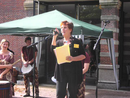 PvdA-raadslid Hilde Jansen nam het voortouw bij de organisatie van de manifestatie op het Stadhuisplein. (Foto's: Chris de Waard).
