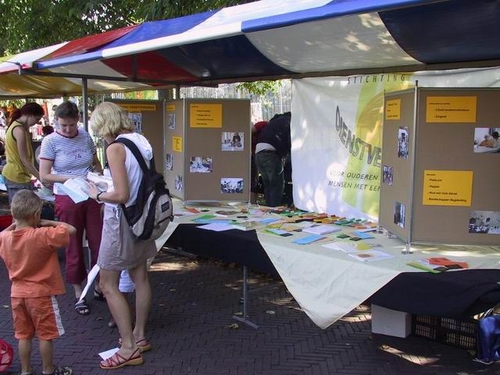 Zondag werd bij Buurthuis ’t Spoortje de jaarlijkse Souk gehouden. De werkgroep Kleurrijk Leiden Noord organiseert de markt waar allerlei organisaties uit de wijk zich kunnen presenteren. Zo konden de bezoekers bij de stand van het Tam Tamfestival kijken naar de TV-uitzending en de foto’s van het Gouden Appeltje dat Máxima in mei van dit jaar uitreikte.