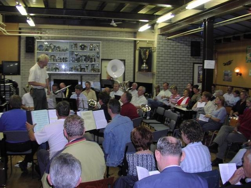 Dirigent Wim de Ru oefent in het pand van Concordia met K & G 3 voor de Koraalmuziek op 3 oktober. (Foto's: Chris de Waard).