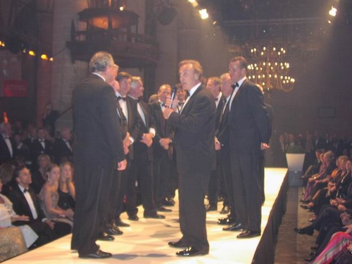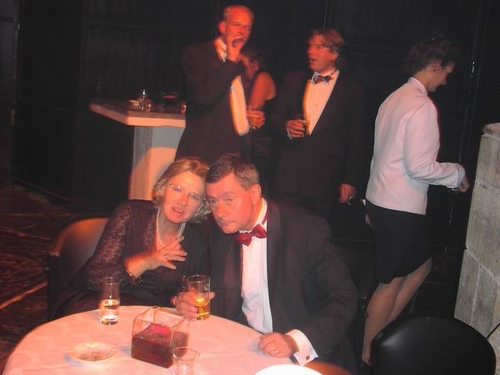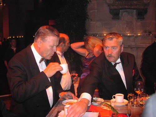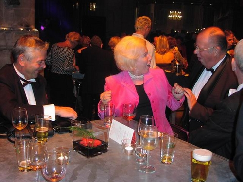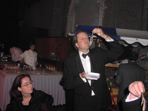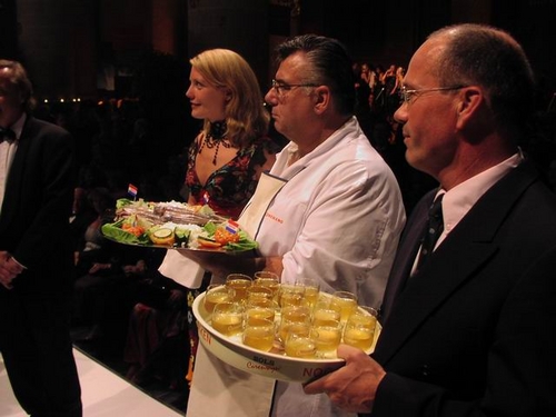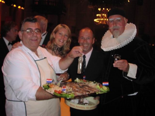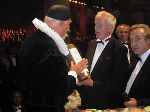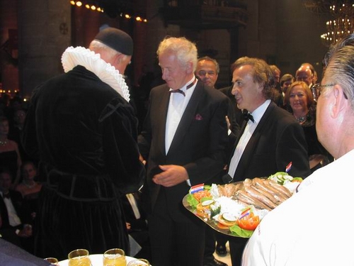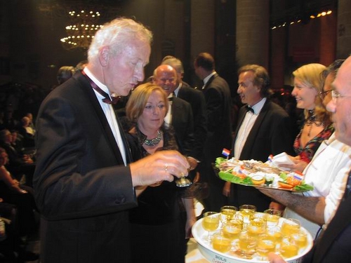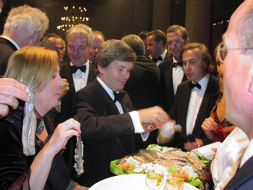 Professor dr. D.D. Breimer, rector magnificus van de Universiteit Leiden, nam de Corenwijn in ontvangst. Vervolgens werd traditioneel de haring geproefd door de sponsors en organisatoren van het gala. (Foto's: Chris de Waard).