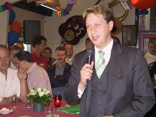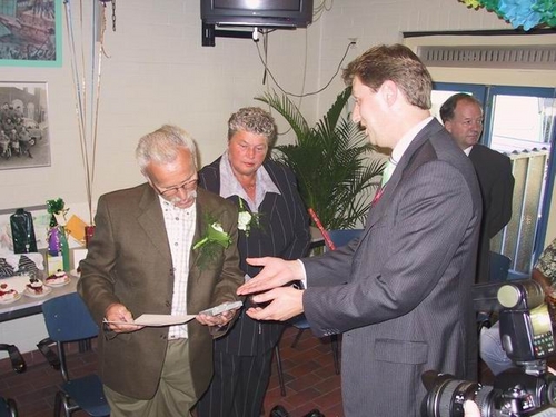 Wethouder Rogier van der Sande overhandigde donderdagmiddag de Jan van Houtpenning aan een verbouwereerde Frans Smit. (Foto's: Bram Pater).