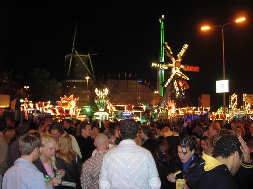 Traditiegetrouw gaat Leiden vooral op de avond van 2 oktober uit z’n dak. In het centrum, vooral op het kermisterrein en rond het Stadhuisplein, was het enorm druk. Ook bij 3 oktobercafé’s bij uitstek, zoals ‘De Uyl’ en ‘De Bonte Koe’ kon je over de koppen lopen.