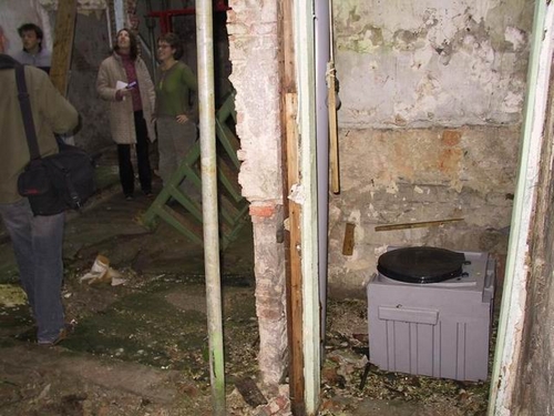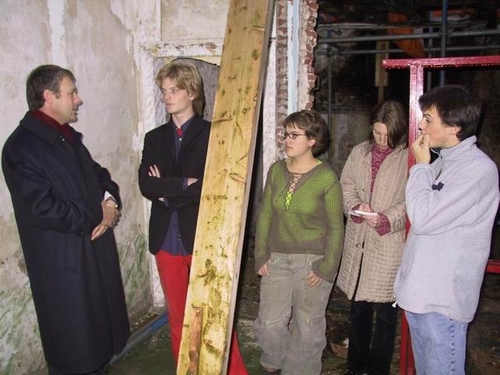 Burgemeester Lenferink wordt door de krakers rondgeleid in het pand. Op 8 november kan iedereen een kijkje nemen in een kraakpand. Dan wordt in heel Nederland de 'Open Kraakdag' gehouden. (Foto's: Bram Pater).