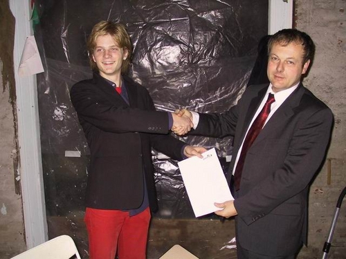 Vrijdagmiddag heeft burgemeester Lenferink een bezoek gebracht aan het gekraakte pand Hooigracht 42. Hij deed dat op uitnodiging van ROOD, de jongeren in de SP. Een aantal ROOD-leden heeeft hun intrek genomen in het pand om zo de leegstand aan de kaak te stellen. ROOD-voorzitter Louk Rademaker overhandigde burgemeester Lenferink hun ‘programma van eisen’.