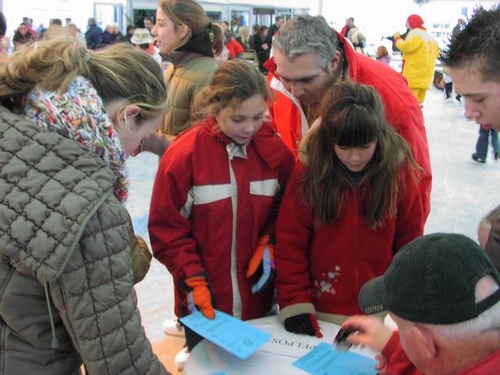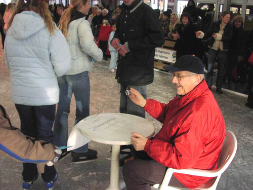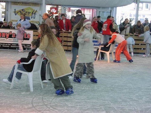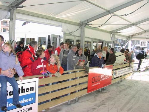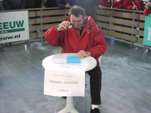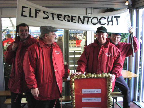 Direct nadat de ijsbaan zaterdagmiddag was geopend, stroomde, vooral, tientallen jongeren het ijs op om met al dan niet terplekke gehuurde schaatsen een paar rondjes te rijden. Op het ijs zaten de ijsmeesters van de Elf Stegen Tocht klaar op hun stempelposten. Een volle stempelkaart was goed voor een gratis drankje in de Koek en Zopie-tent.