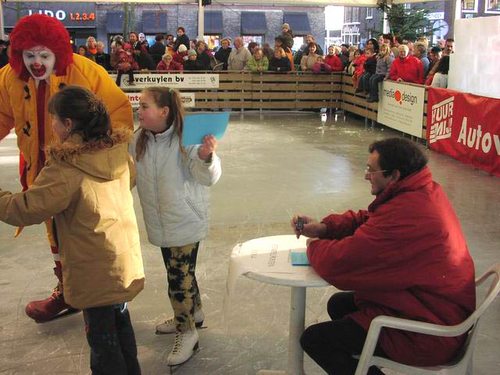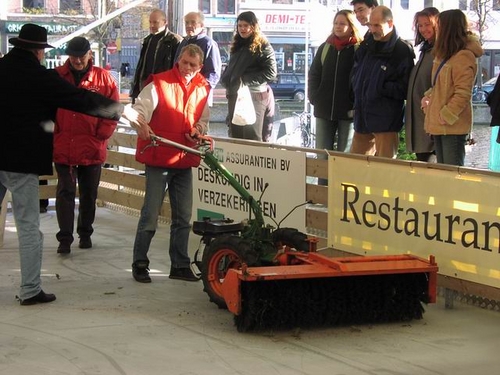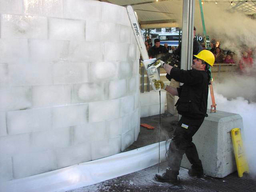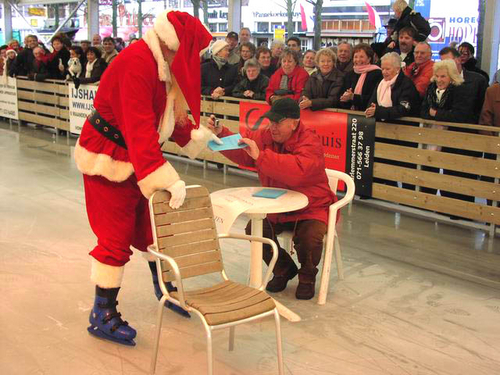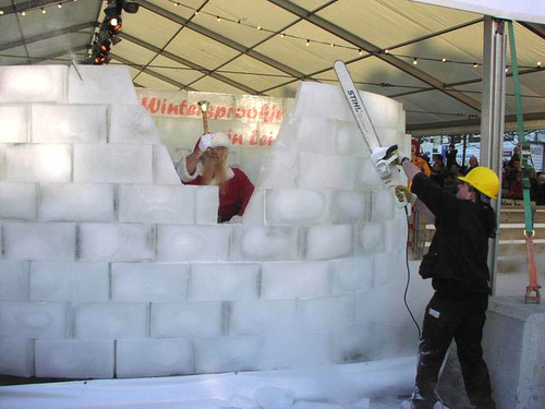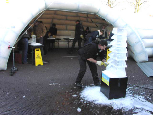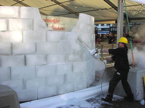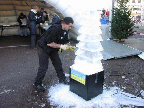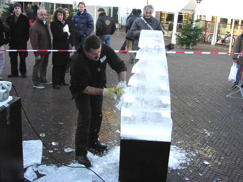 Afgelopen middag heeft PvdA-wethouder Ron Hillebrand met een beiteltje de ijsbaan op de Beestenmarkt geopend. Hij kreeg daarbij hulp van vervaarlijk uitziende mannen met kettingzagen. De ijsbaan is dagelijks open van 12.00 tot 22.00 uur en blijft tot en met 4 januari liggen. De komende weken worden er talloze activiteiten georganiseerd. Een overzicht daarvan staat op www.ijsbaan.org/.
