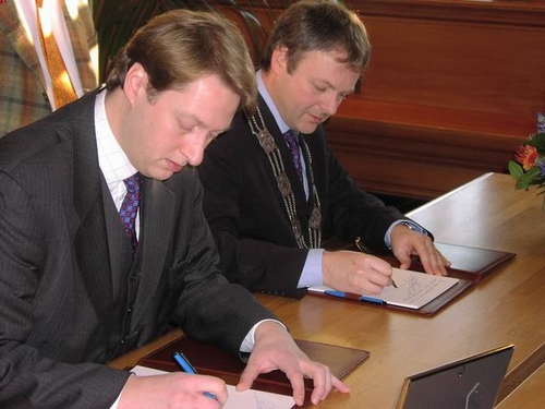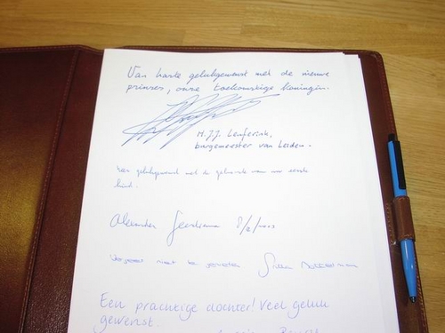 Om 11.00 uur vanmorgen tekenden burgemeester Lenferink en wethouder Rogier van der Sande als eersten het felicitatieregister. Lenferink schreef: "Van harte gefeliciteerd met de prinses, onze toekomstige koningin. H.J.J. Lenferink, burgemeester van Leiden". Het stadhuis en veel inwoners hebben de vlag uitgehangen. Molen De Put heeft de wieken ter gelegenheid van de geboorte van de prinses in de zogenaamde vreugdestand gezet.(Foto's: Chris de Waard, Gerard Ligtvoet & Philip Pijnnaken).