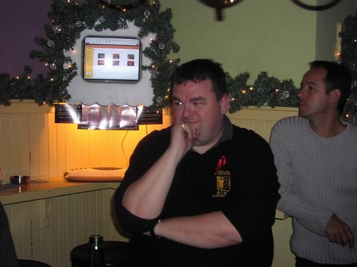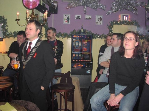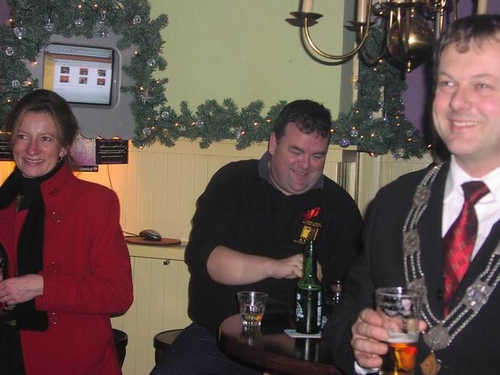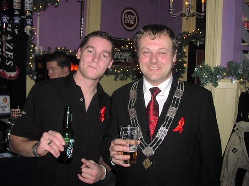 Een cheque van ruim 3650 euro kon burgemeester Lenferink woensdagavond in Gaycafé De roze Beurs overhandigen aan het Aidsfonds. Links organisator en eigenaar van de Roze Beurs, Rogier van de Linden. (Foto's: Chris de Waard).
