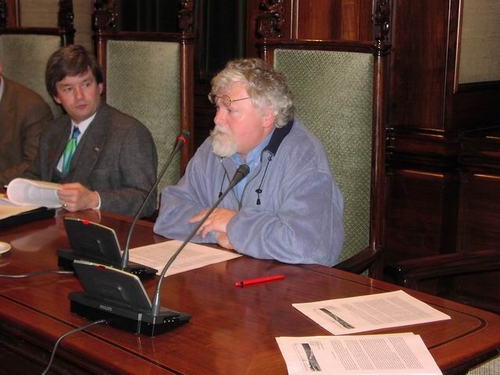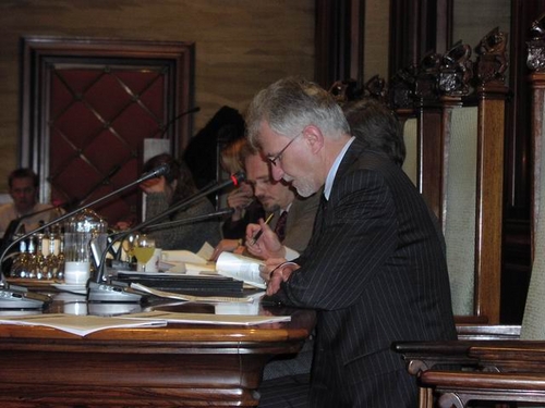 De hele buitenste ring van de Raadzaal zat vorige week vol insprekers. Bijna allemaal waren ze tegen de komst van een industrieterrein in 'hun' polder. (Foto's: Chris de Waard).