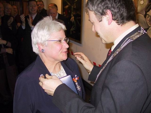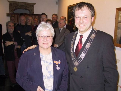 Mevrouw drs. I.W.L. Moerman, scheidend conservator van de Historische Afdeling van het Stedelijk Museum De Lakenhal heeft vanavond bij haar afscheid twee onderscheidingen ontvangen. Burgemeester en Wethouders hebben besloten haar vanwege jarenlange inzet voor de promotie van het museum de Jan van Houtpenning toe te kennen. Het college heeft daarbij overwogen dat zij er als geen ander in is geslaagd de Leidenaar naar het museum te krijgen. Zij heeft brede lagen van de bevolking in de Leidse geschiedenis geïnteresseerd. Dat is mede gebeurd door de serie tentoonstellingen “Verzameld en Getoond”. Ook heeft zij een grote bijdrage geleverd aan de ontwikkeling van de geschiedschrijving van Leiden en de bescherming van het stedelijk cultuurbezit. De Jan van Houtpenning is een gemeentelijke onderscheiding die wordt uitgereikt aan ambtenaren die zich gedurende een lange reeks van jaren hebben onderscheiden door bijzonder toewijding aan hun taak. Ingrid Moerman is bovendien benoemd tot Ridder in de Orde van Oranje-Nassau.