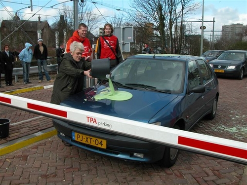 Een gratis parkeerkaartje zat er voor huisvrouw Els afgelopen zaterdag niet in, omdat haar auto niet de gewenste modekleur had. Haar reactie trok afgelopen zaterdag veel aandacht van de, voor de slagbomen van het parkeerterrein aan de Haagweg, wachtenden automobilisten. Uit onvrede over de weigering haalde de automobiliste uit haar kofferbak een paar emmers vla die eigenlijk bestemd waren voor haar kleinkinderen. Vervolgens goot ze de vla over het dak en de motorkap van haar auto. Aangezien de vla wel de modekleuren van de zomer 2004 had, zat er voor het promotieteam aan de Haagweg niets anders op om deze daad te belonen met een gratis parkeerkaartje voor de hele dag.