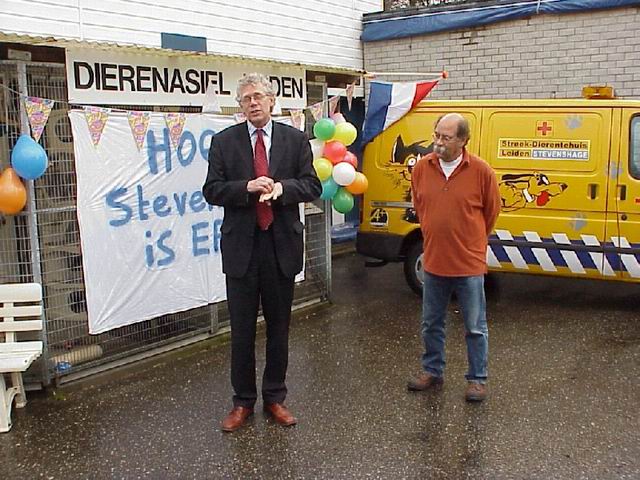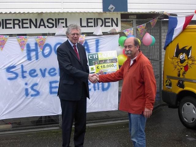 Ook de heer Der Weduwen, voorzitter van de dierenbescherming afdeling Noordwijk, liet zijn lovende woorden vergezeld gaan van een cheque en hoopt op een voortzetting van de goede samenwerking met Stevenshage in de toekomst.